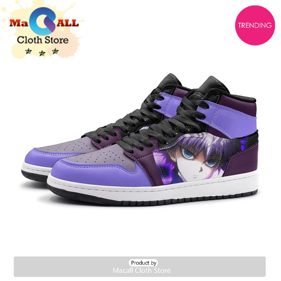 The Killua Lightning Palm Hunter X Hunter Air Jordan 1 High Top Shoes are a unique and must-have product for fans of the popular anime series, Hunter X Hunter. These high top shoes are designed to replicate the signature lightning palm technique of one of the main characters, Killua. The shoes feature a sleek black and white color scheme with striking yellow accents, paying homage to Killua’s lightning abilities. Made with high-quality materials, these shoes not only offer style but also comfort and durability. Whether you’re a die-hard fan of the series or just looking for a stylish and eye-catching pair of shoes, the Killua Lightning Palm Hunter X Hunter Air Jordan 1 High Top Shoes are a perfect choice. With their exceptional design and top-notch quality, these shoes are sure to elevate your streetwear game and turn heads wherever you go. Grab yours now and channel your inner Hunter X Hunter fan!