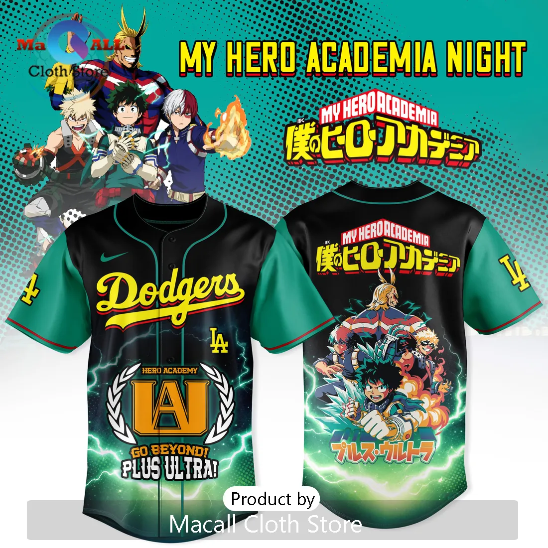 LA Dodgers My Hero Academia Night Plus Ultra Baseball Jersey