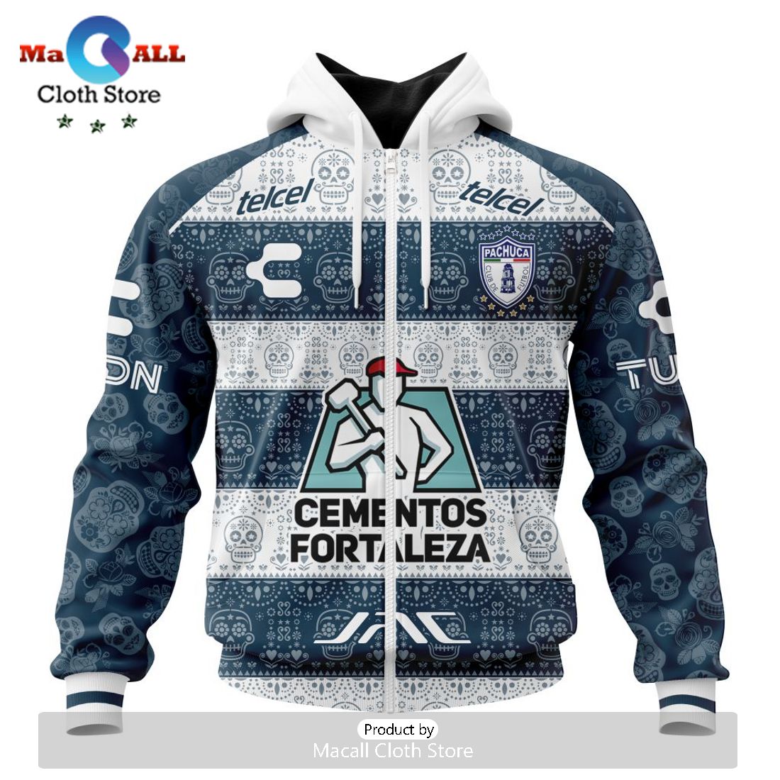 LIGA MX C.F. Pachuca Special Home Dia De Muertos Hoodie Trendy Fashion Hoodie, Zipper Hoodie, Fleece Zipper Hoodie, Dress Hoodie, T-Shirt, Long Sleeves, Sweatshirt and Long Pant