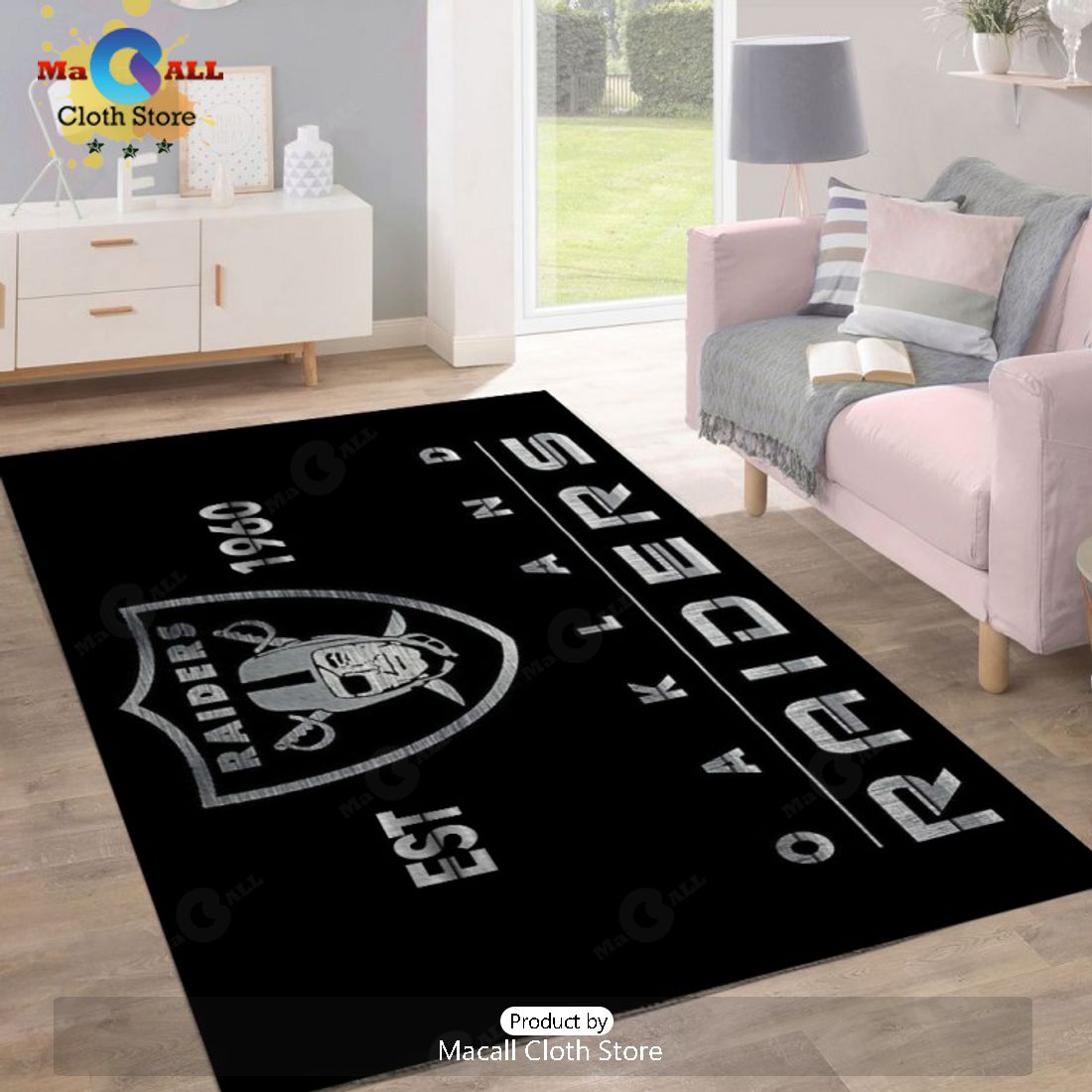 Luxury Las Vegas Raiders NFL EST 1960 Black Rectangular Rug Limited Edition Information: