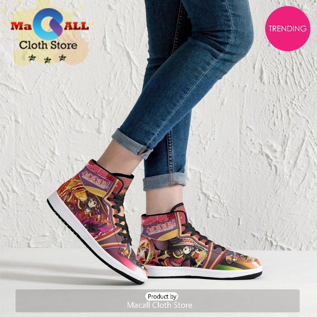 Imagine yourself wearing a pair of Megumin Explosion Konosuba JD1 High Top Shoes. The shoes are made of high-quality leather and have a sturdy construction. They are also very comfortable, with a cushioned insole and a flexible sole. You put them on and immediately feel the support and cushioning. You lace them up and take a step, and you are amazed at how light and agile they feel. You start walking, and the shoes just seem to glide over the ground. You feel like you can walk for miles in these shoes. You start to run, and the shoes keep up with you effortlessly. You feel like you can run forever. You are having so much fun that you don’t even notice how long you have been wearing the shoes. When you finally take them off, you feel like you could walk on air.