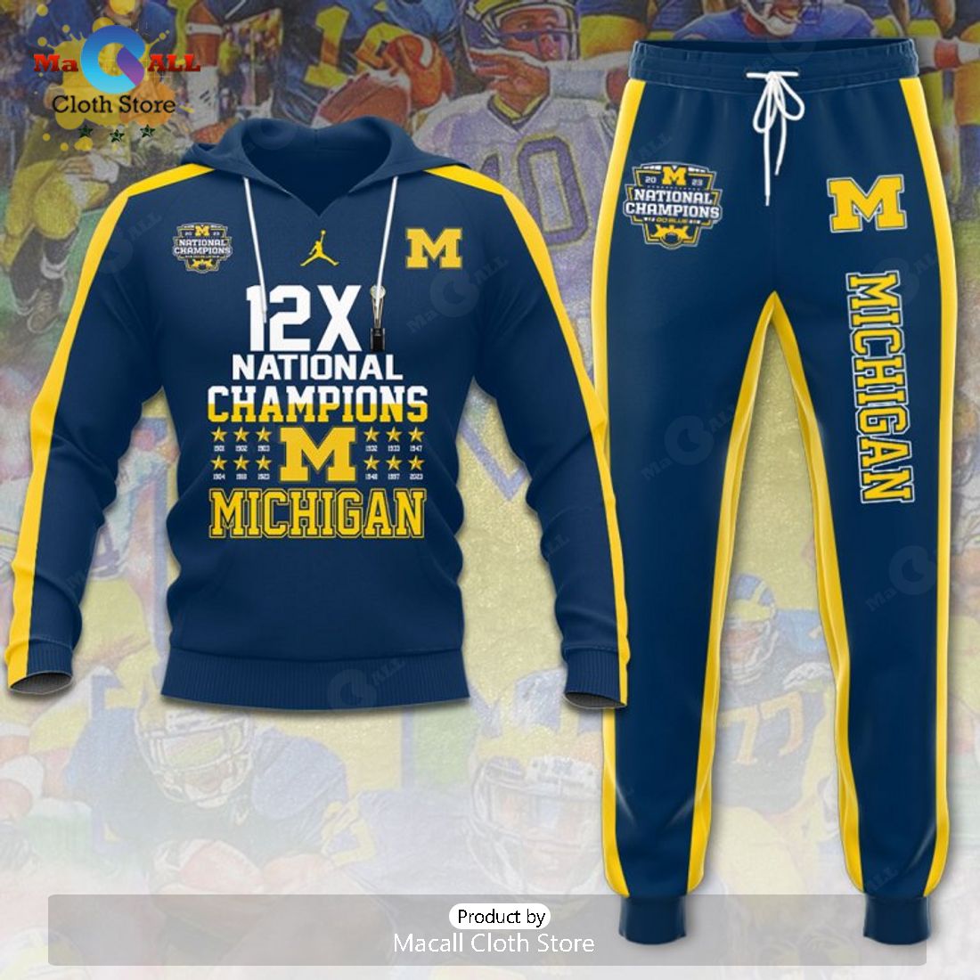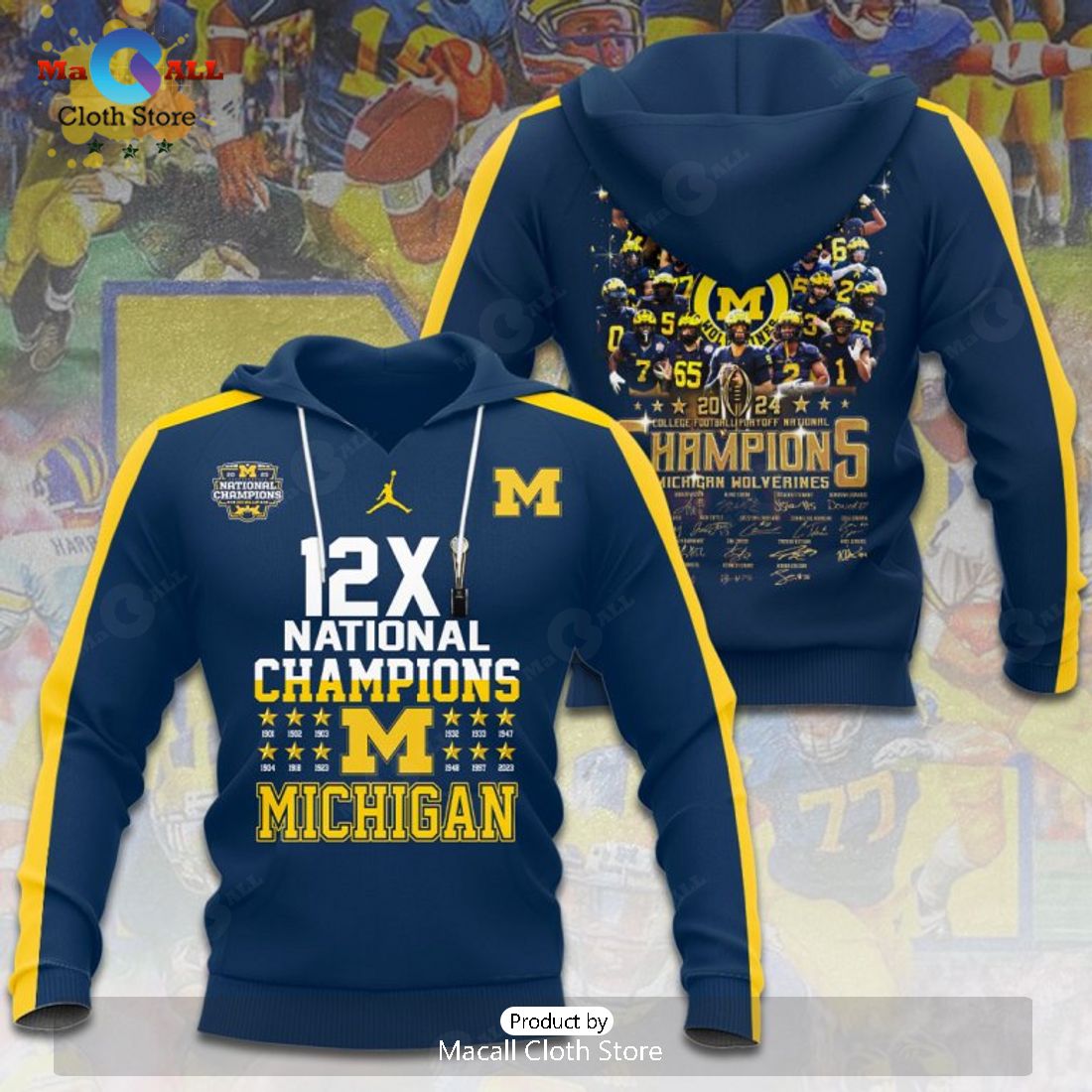 Michigan Wolverines 12x National Football Champions Apparels Hoodie 3D Trendy Fashion Hoodie, Zipper Hoodie, Fleece Zipper Hoodie, Dress Hoodie, T-Shirt, Long Sleeves, Sweatshirt and Long Pant