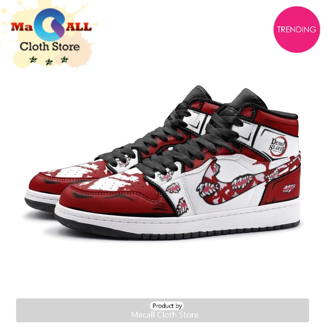 The Muzan Kibutsuji Demon Slayer Air Jordan 1 High Top Shoes are a must-have for any fan of the popular anime/manga series Demon Slayer. These shoes feature a bold and sleek design, with a black and red color scheme that is inspired by the character Muzan Kibutsuji, the main antagonist of the series. The iconic Air Jordan 1 silhouette is given a unique twist with the addition of Demon Slayer themed details, such as the embroidered “ms” logo on the tongue and the “Akuma” (devil) lettering on the side. The shoe also boasts high-quality materials and construction, ensuring both comfort and durability for the wearer. Not only are these shoes a stylish addition to any sneaker collection, but they also serve as a unique way to show off your love for Demon Slayer.