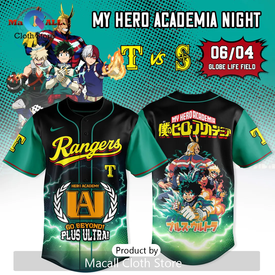 My Hero Academia Texas Rangers Plus Ultra Anime Baseball Jersey