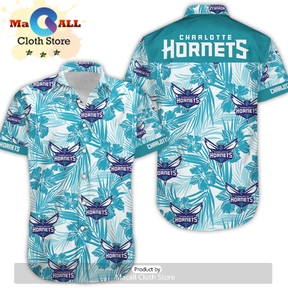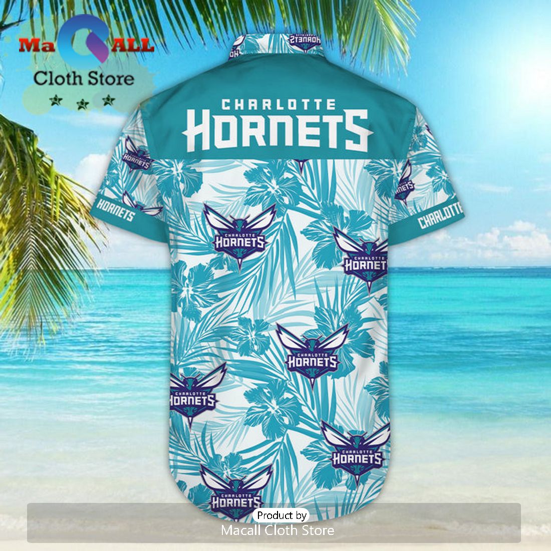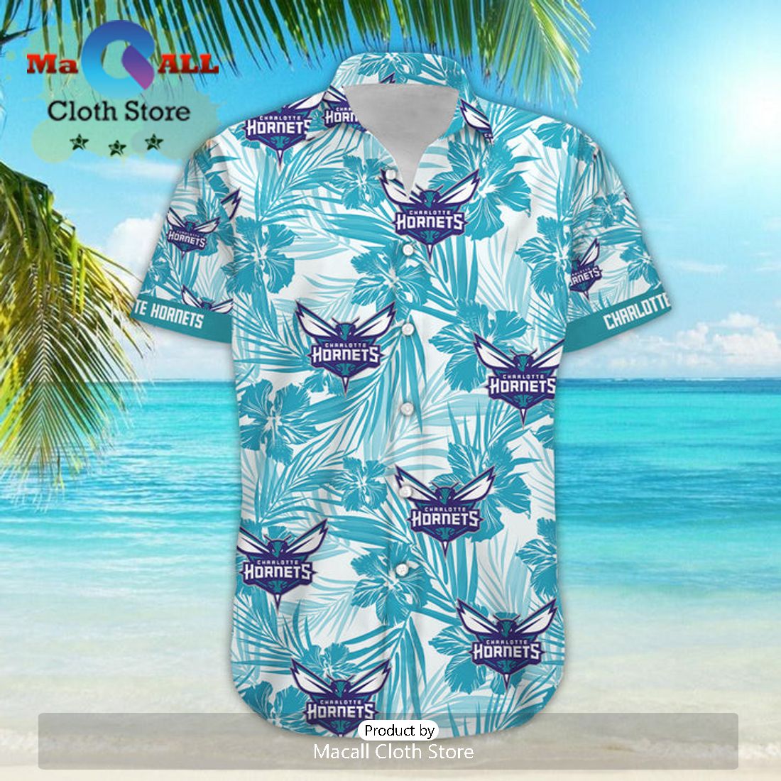 NBA Charlotte Hornets Black Teal Palm Trees Beach Hawaiian Shirt Information: