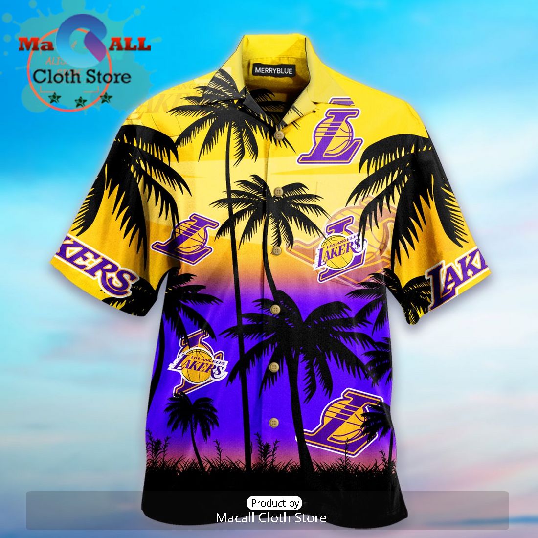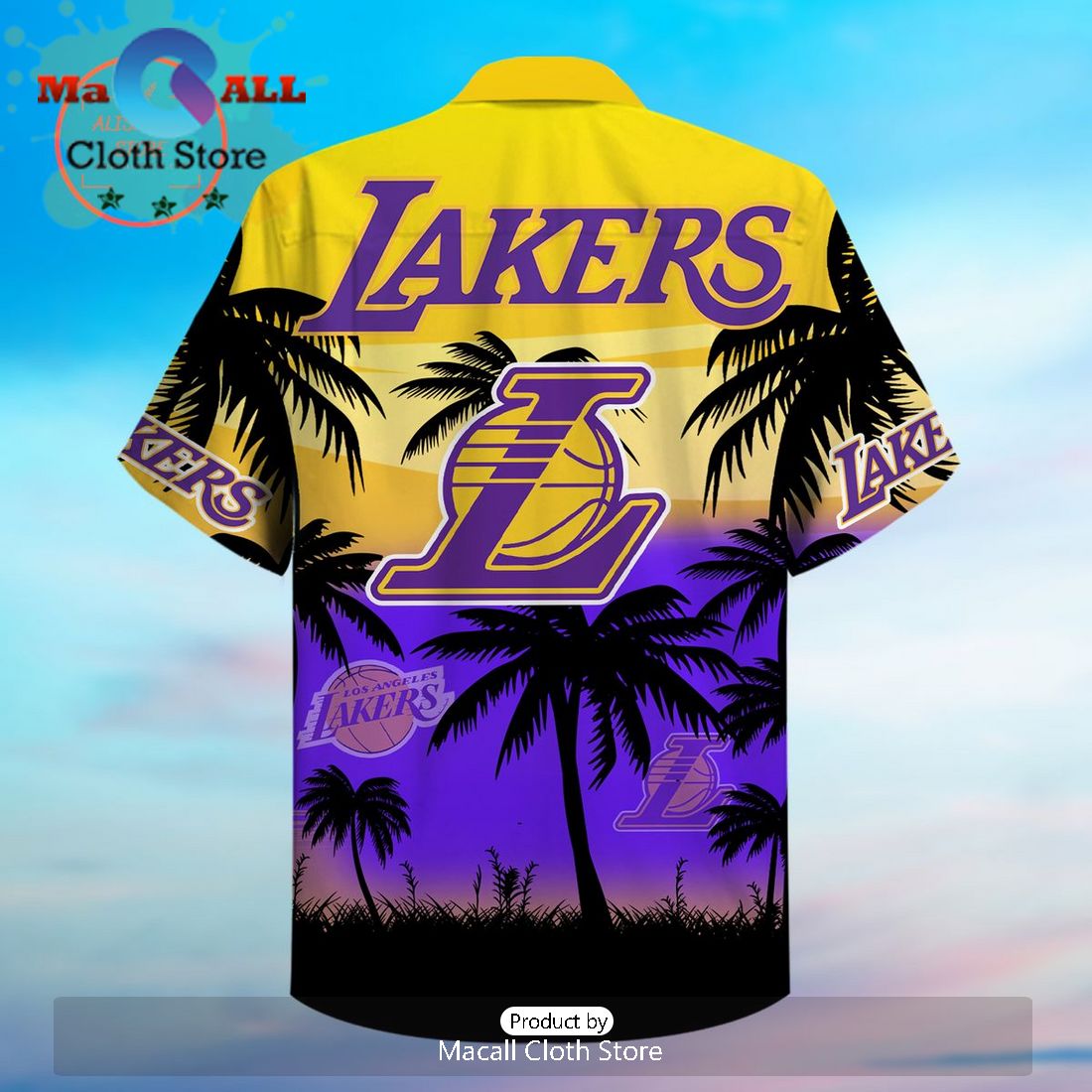 NBA Los Angeles Lakers Purple Golden Palm Beach Hawaiian Shirt Trendy Fashion Style – Hawaiian Shirt and Shorts