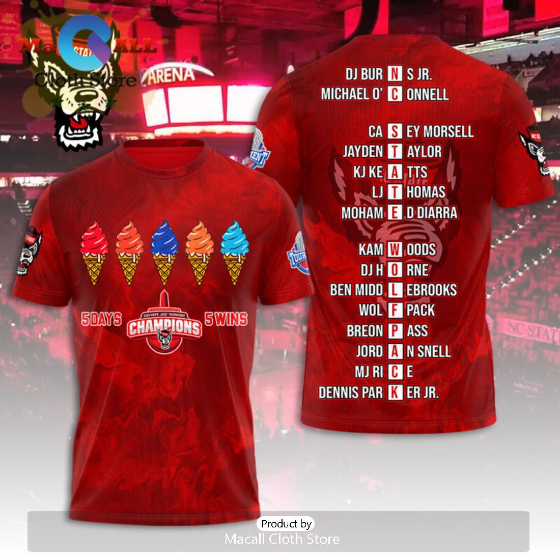 Order your NC State Wolfpack 5 Days 5 Wins Men’s Basketball 3D Hoodie today and show your Wolfpack pride!