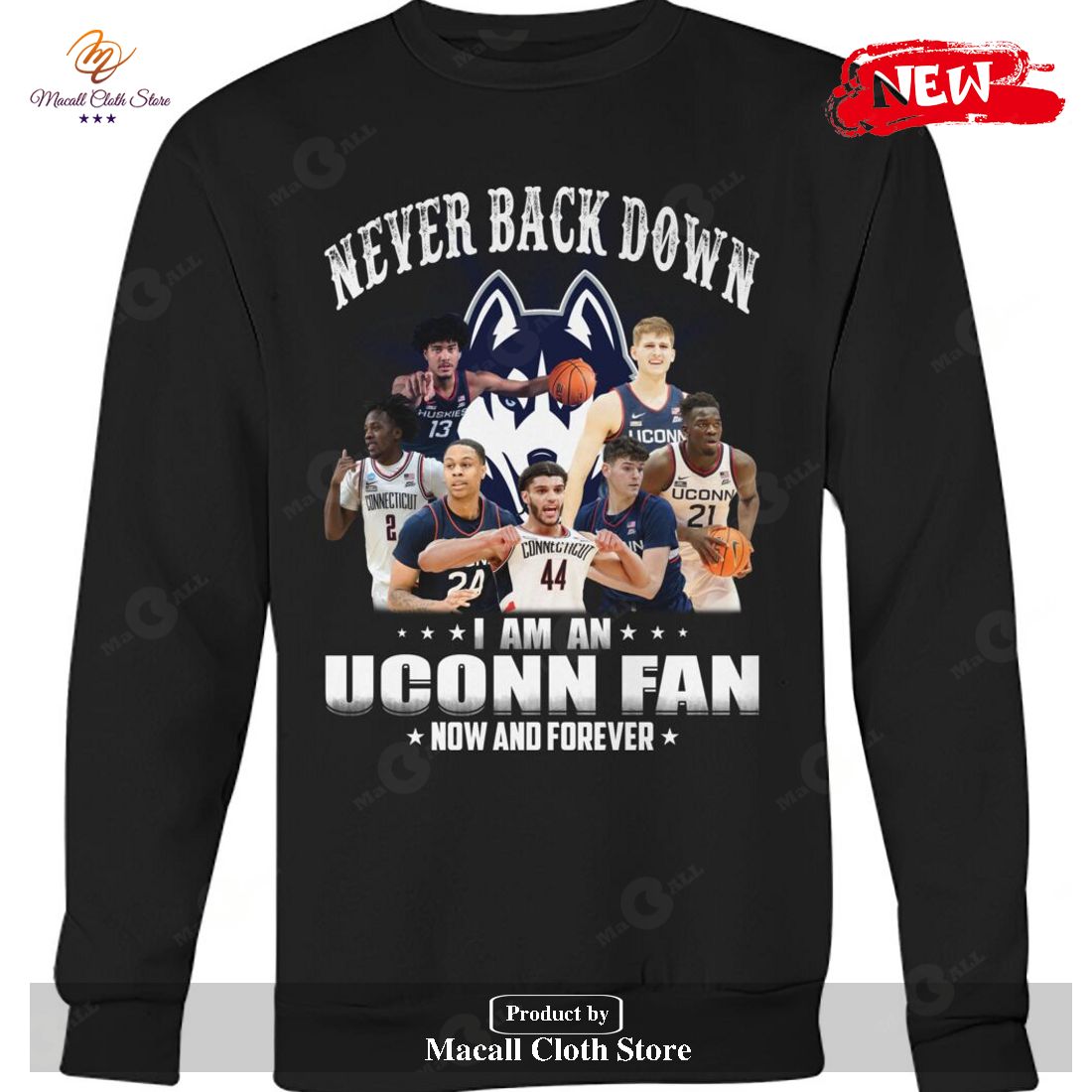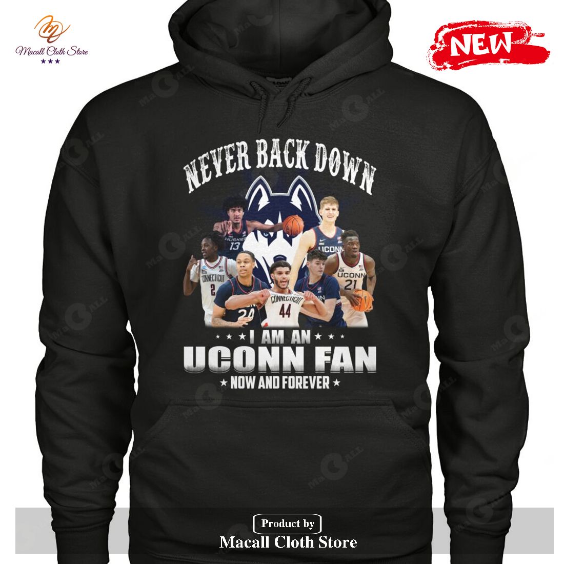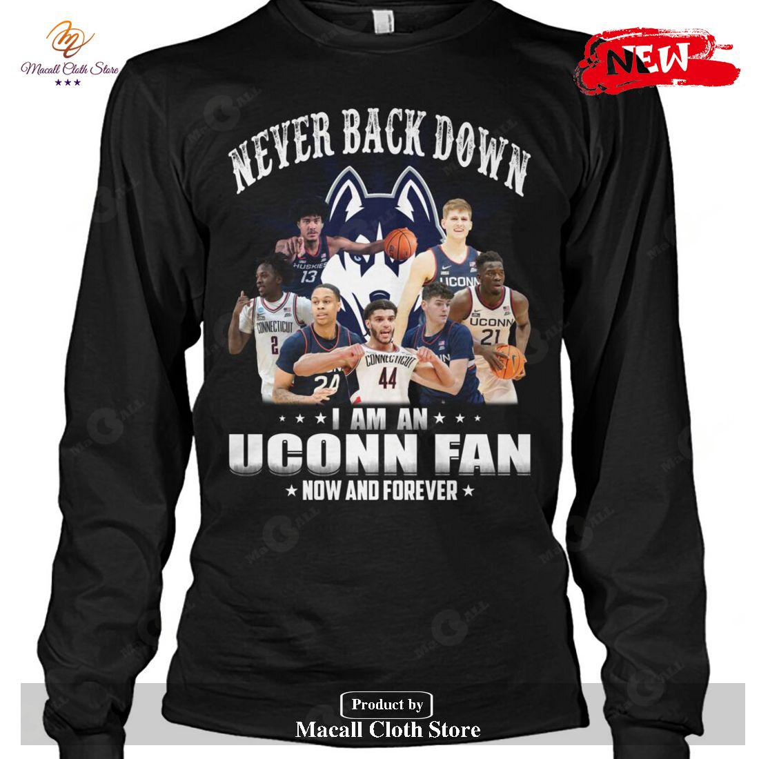 Never Back Down – I Am An Uconn Fan Now And Forever-Unisex T-Shirt Unisex Hoodie, Ladies, Youth, Long Sleeve, Sweatshirt, Mug, Mask