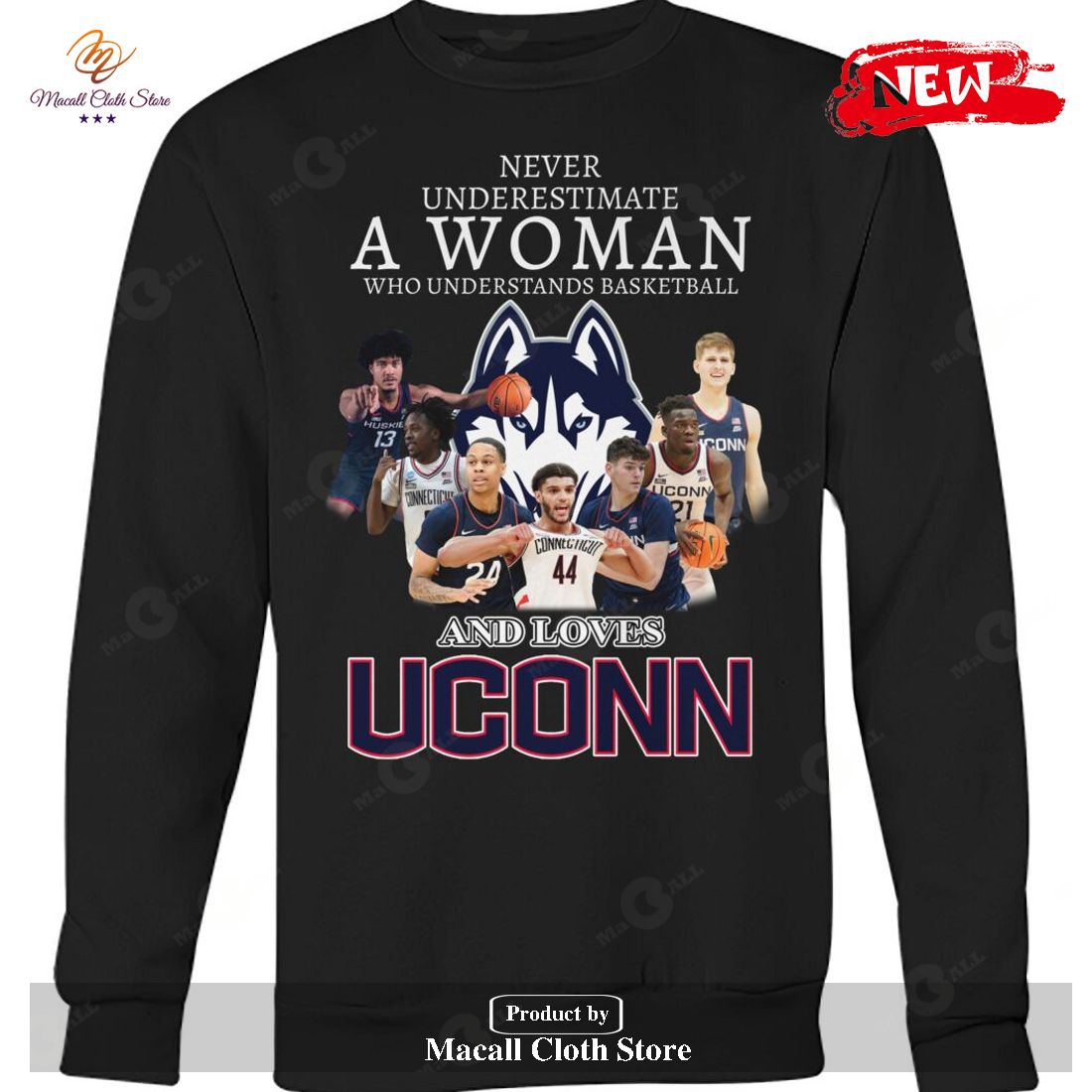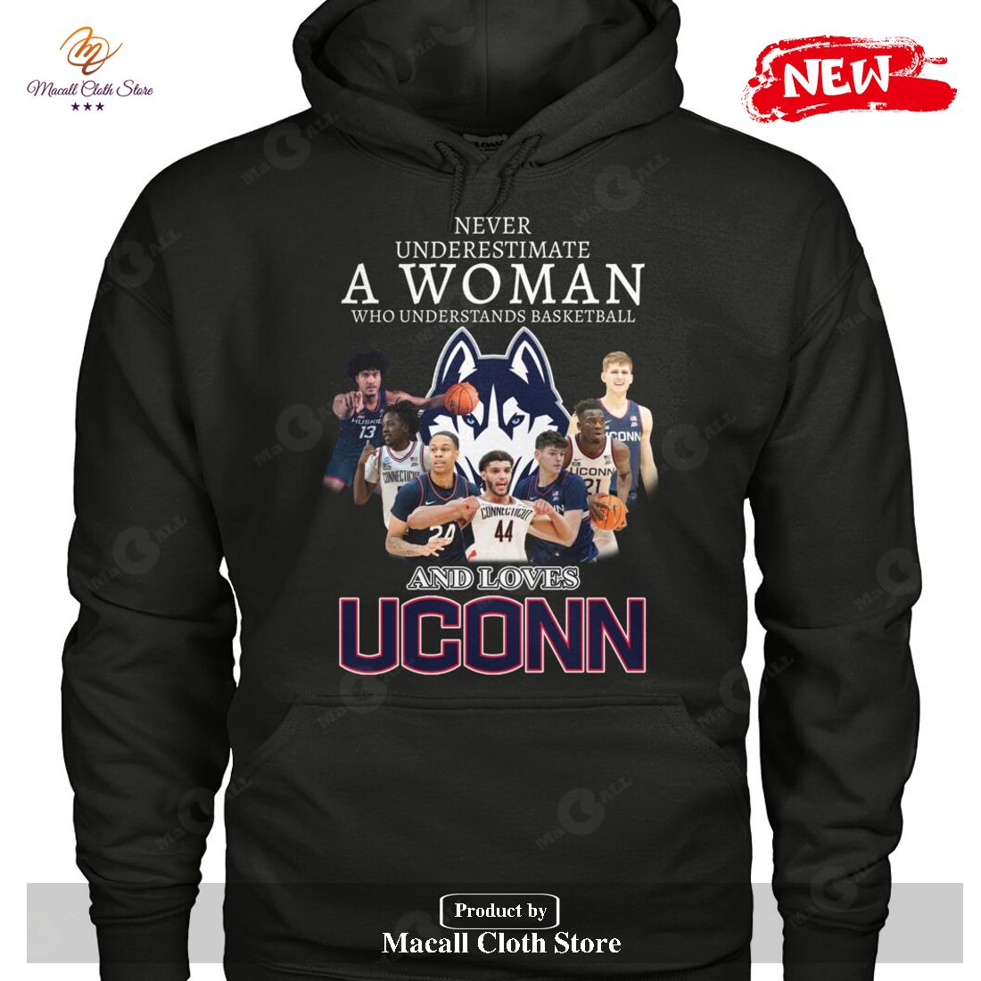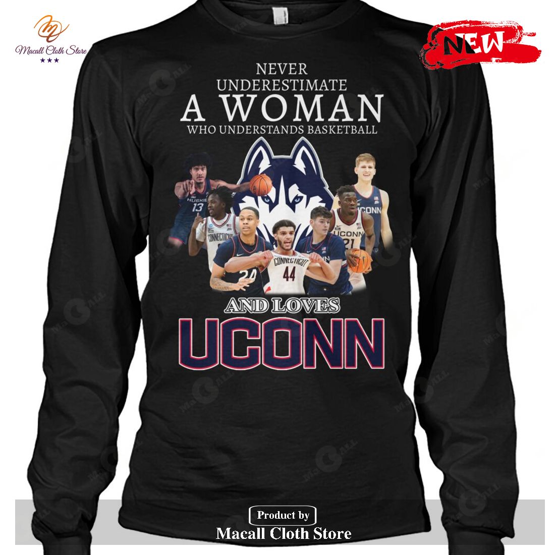 Never Underestimate A Woman Who Understands Basketball And Loves Uconn-Unisex T-Shirt Unisex Hoodie, Ladies, Youth, Long Sleeve, Sweatshirt, Mug, Mask
