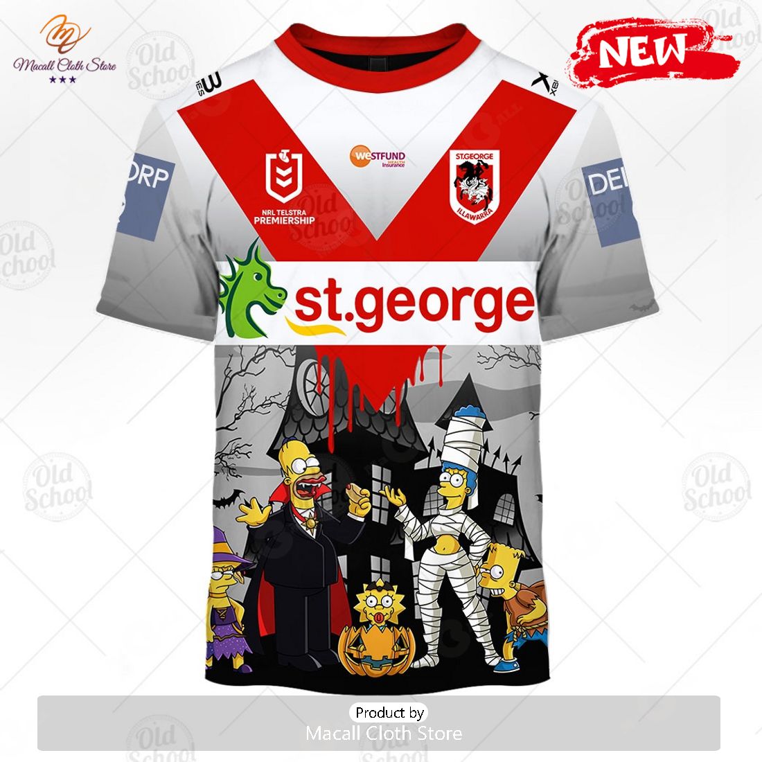 NEW Personalise NRL St. George Illawarra Dragons x The Simpsons 2023 Halloween Jersey Hoodie 3D Trendy Fashion Style