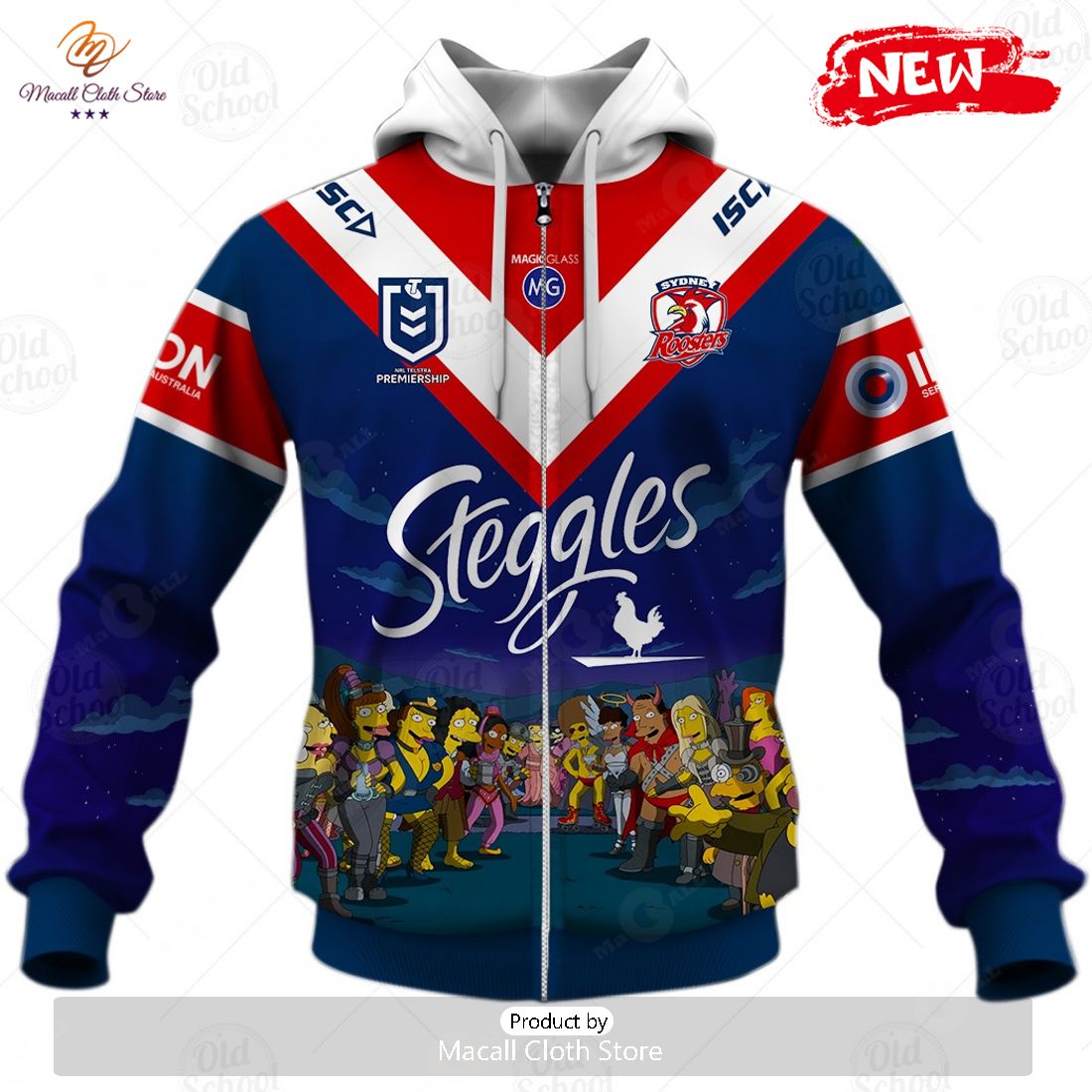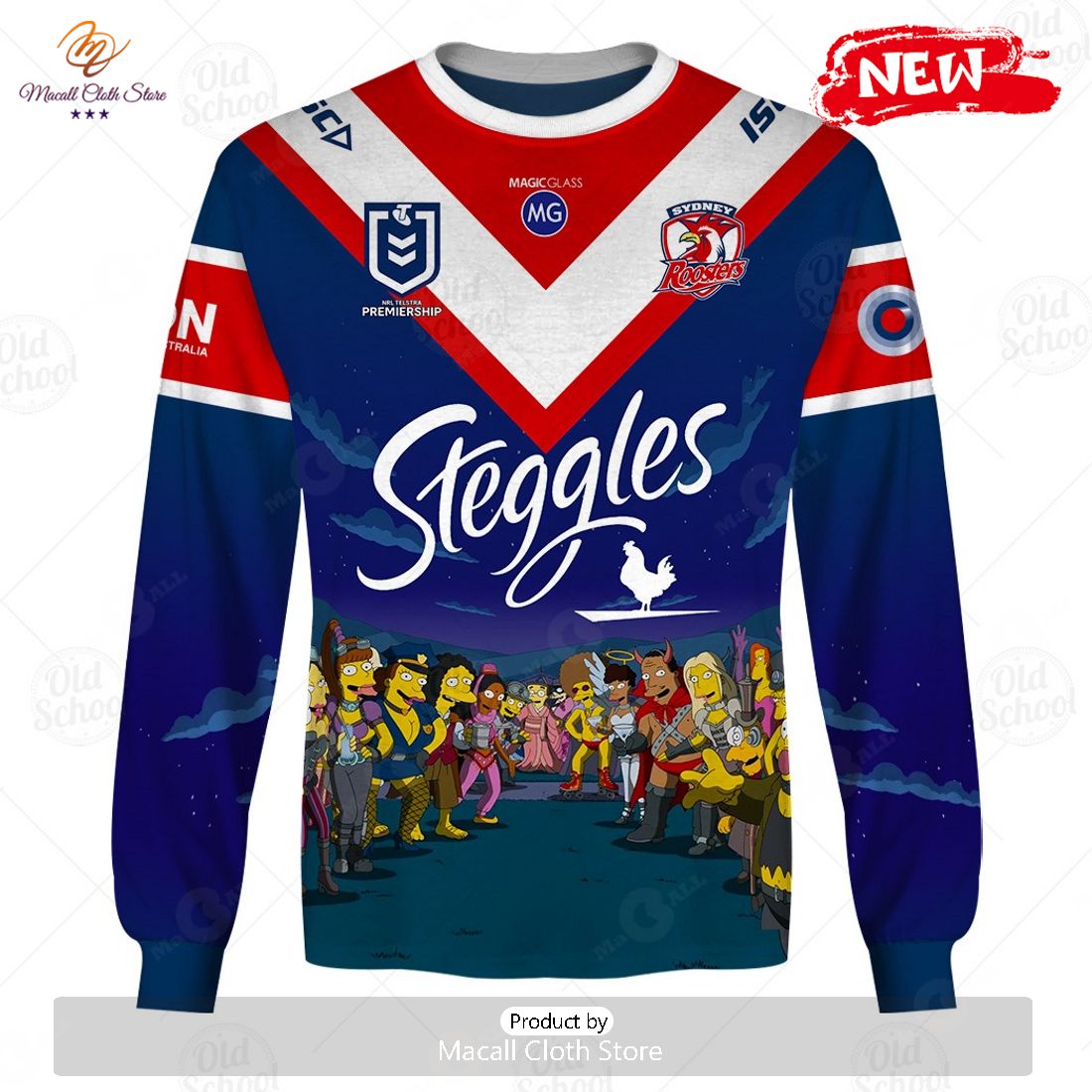 NEW Personalise NRL Sydney Roosters x The Simpsons 2023 Halloween Jersey Hoodie 3D Trendy Fashion Style