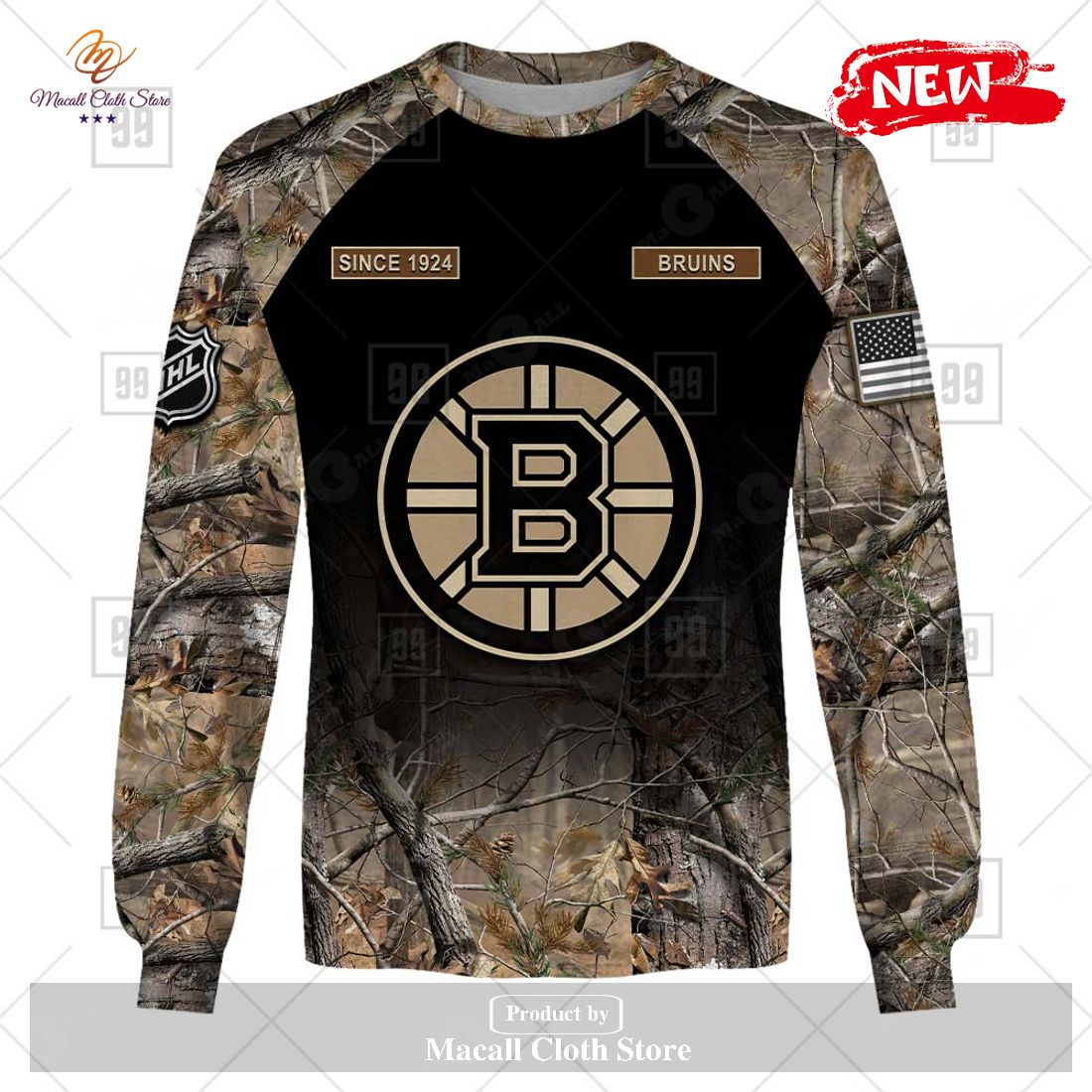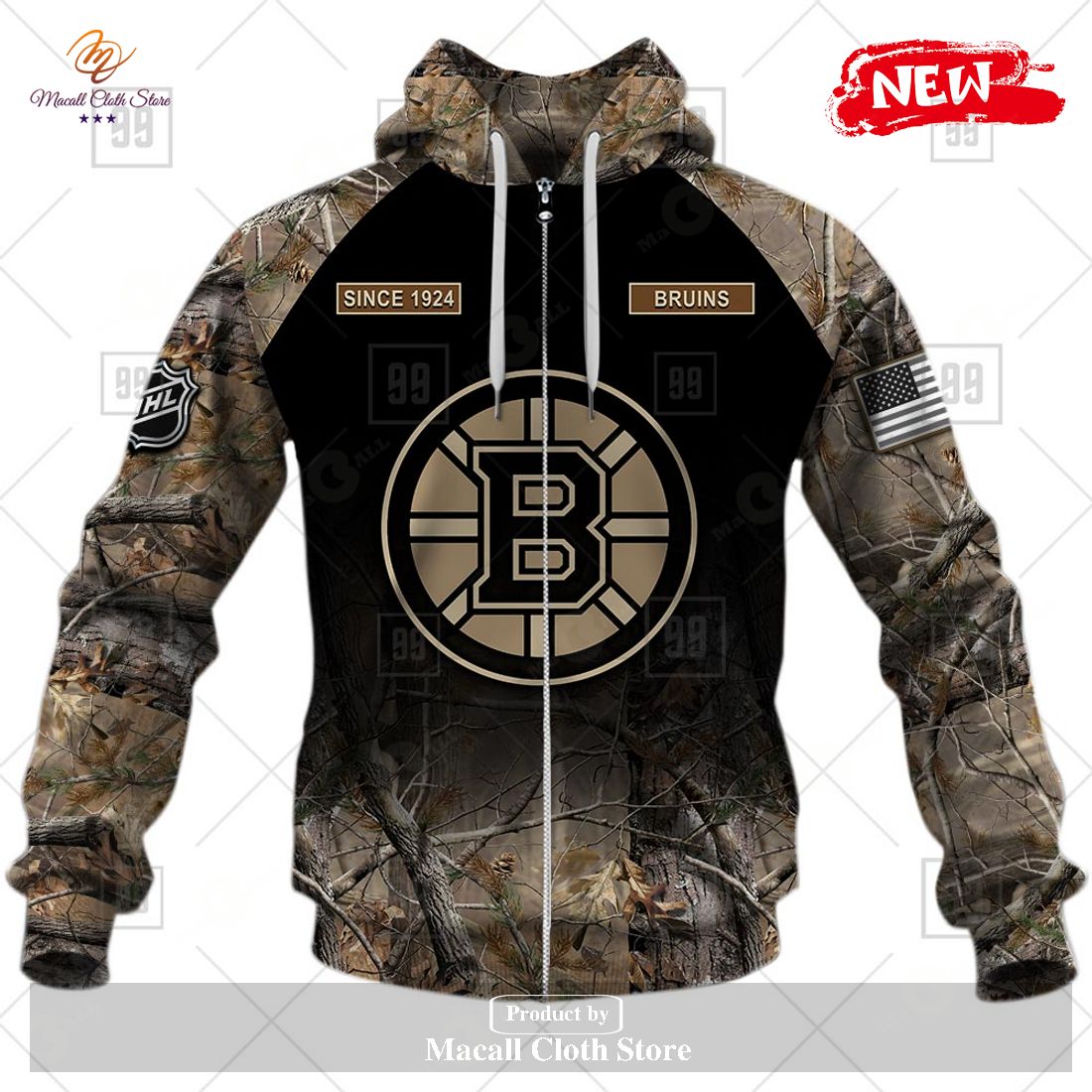 [NEW] Personalized NHL Boston Bruins Hunting Camouflage Design Hoodie Sweatshirt 3D Information: