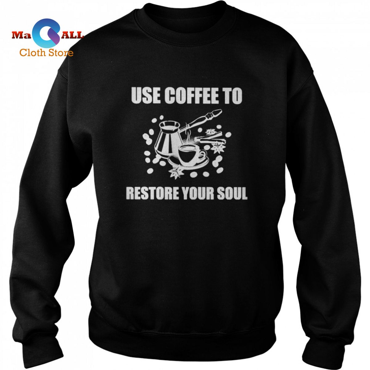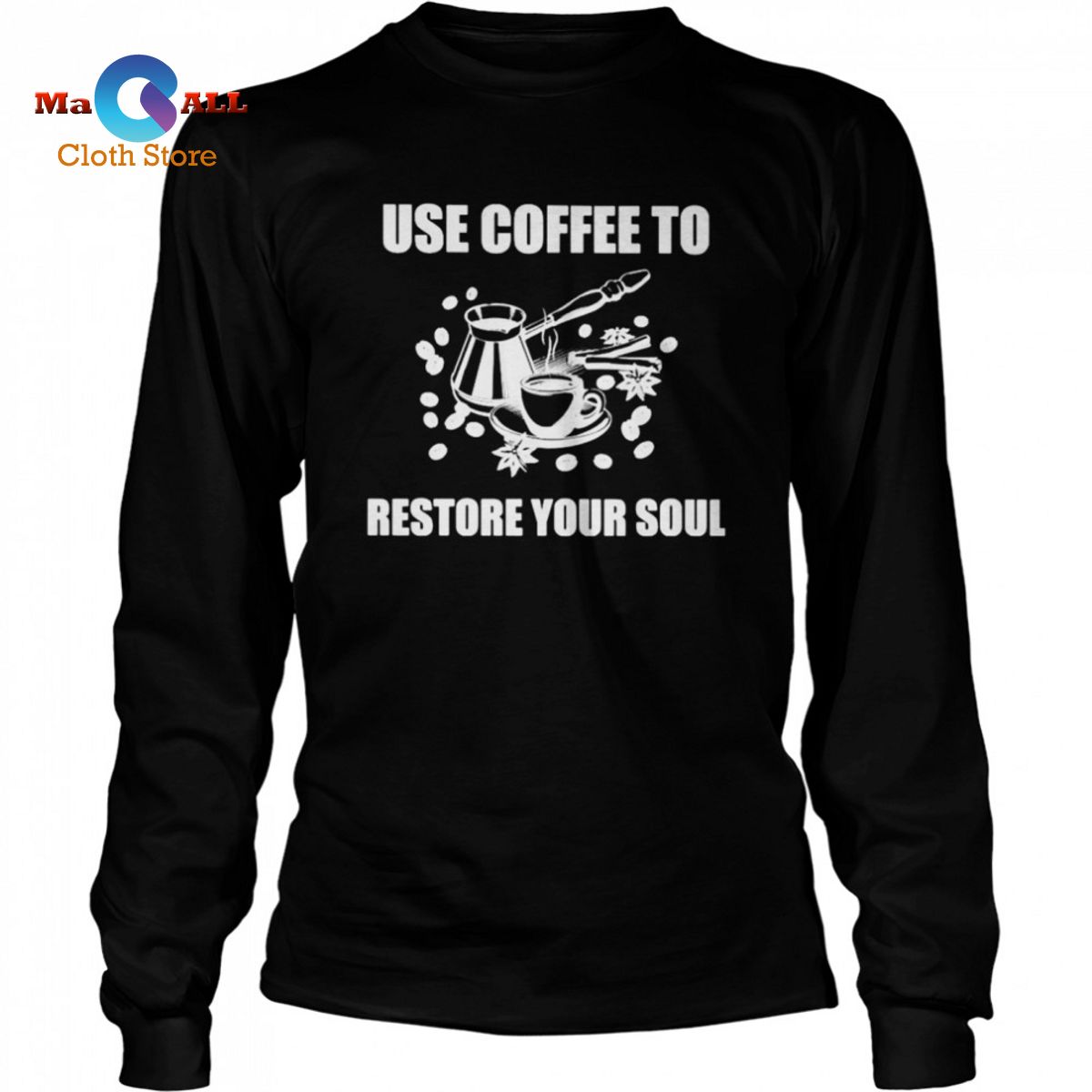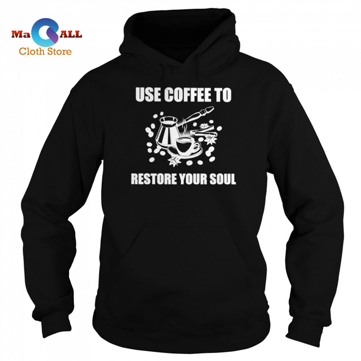 [NEW] Use Coffee To Restore Your Soul T-Shirt Unisex Hoodie, Ladies, Youth, Long Sleeve, Sweatshirt, Mug, Mask