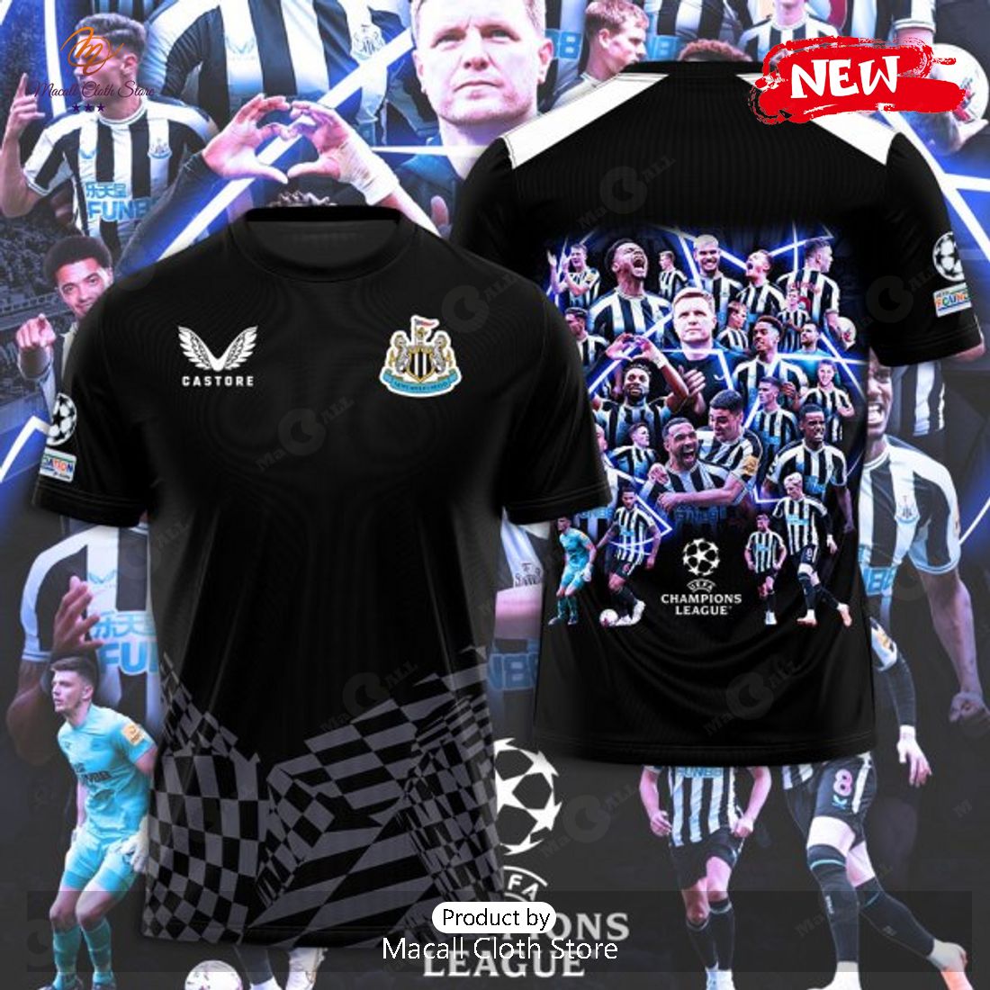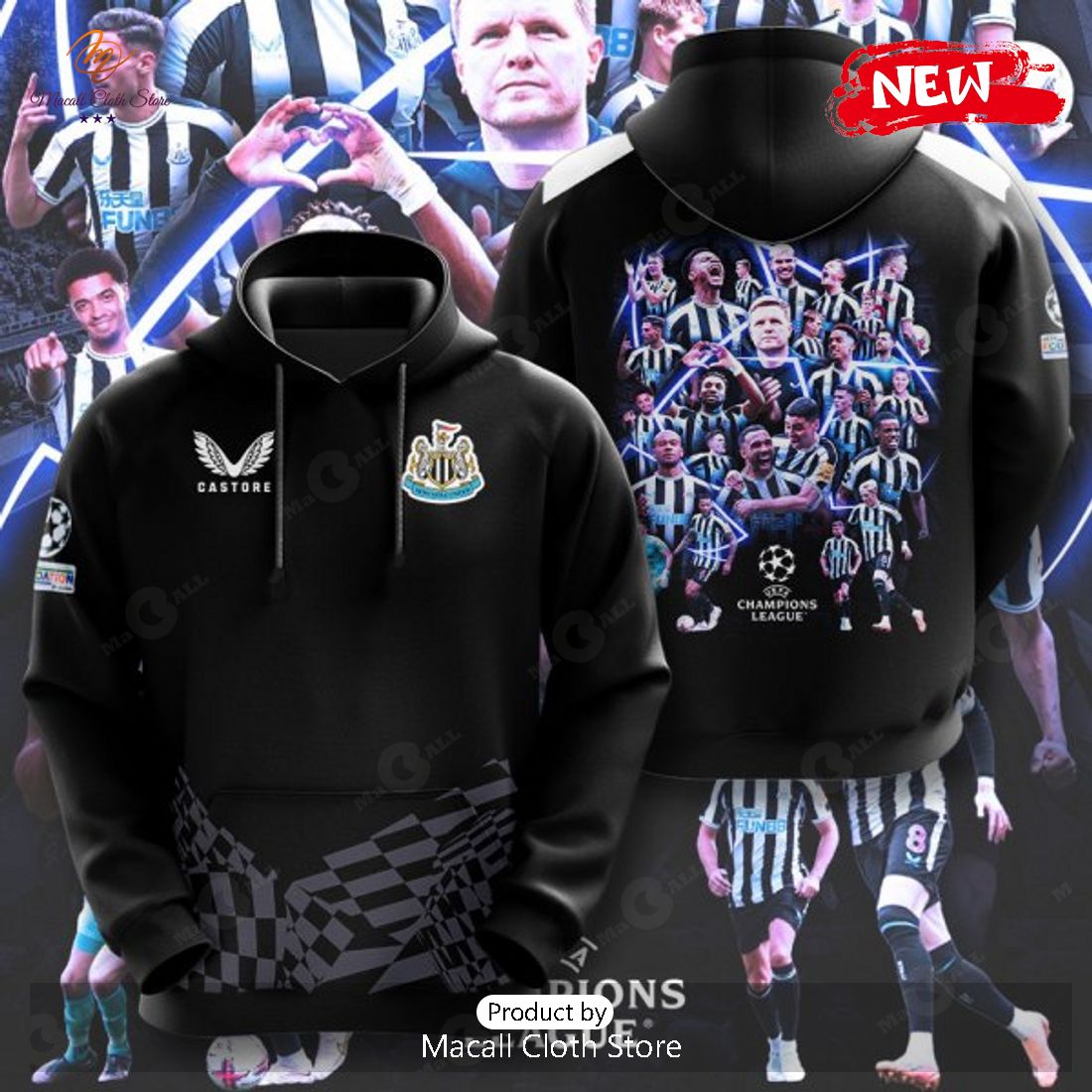 Newcastle United Champions League Luxury Players Patterns Black Hoodie Sweatshirt 3D