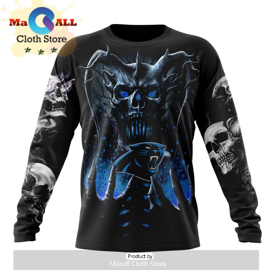 Using this particular product has been a unique and exciting experience. The first thing that catches my eye is the bold and intricate skull art design on the front of the hoodie. It is truly like no other design I have seen before. The colors and details are not only impressive but also give off a strong and fierce vibe. As I slip the hoodie on, I am greeted with a warm and comfortable feeling. The material is soft and cozy, perfect for those chilly fall days. The attention to detail is also noticeable in the stitching and quality of the fabric. It is clear that this product was created with care and precision. One thing that sets this hoodie apart from others is the special addition of the NFL Carolina Panthers logo on the sleeve. It is subtle yet adds a touch of team spirit to the overall design. As I wear this hoodie out and about, I can’t help but notice the looks of admiration and curiosity from others. It truly stands out and makes a statement. Whether I am at a football game or just running errands, I feel confident and stylish in this hoodie. The fit is also just right, not too baggy but not too tight. It allows for easy movement and doesn’t restrict me in any way. The hood itself is also a great addition, providing extra warmth and protection from the elements. What I also appreciate about this product is its durability. I have worn it multiple times and washed it several times, and it still looks as good as new. It didn’t shrink or lose its shape like some other hoodies I have owned in the past. This shows the high quality and craftsmanship put into making this product. Overall, using this hoodie has been a fantastic experience. The combination of unique design, comfort, fit, and durability make it a standout product in my wardrobe. I highly recommend it to anyone looking for a stylish and functional hoodie, even if they are not a fan of the NFL or the Carolina Panthers. It is a piece that can be appreciated by anyone who values quality and individuality.