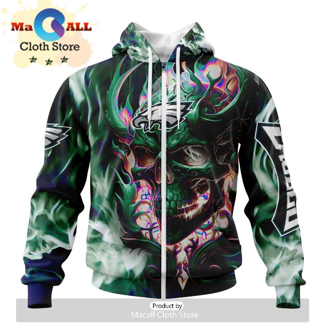 When first laying eyes on this item, my excitement grew as I quickly realized the high quality and intricate design of the hoodie. The color scheme of black and green combined with the skull art design gave off a tough and edgy vibe, which immediately appealed to me. As I put on the hoodie, I could feel the soft and comfortable material against my skin, making me never want to take it off. The limited edition aspect added a sense of exclusivity and uniqueness to the product. The attention to detail was evident in every stitch and the Eagles team logo, adding to the overall aesthetic. As I wore the hoodie out in public, I received numerous compliments and inquiries about where I got it from. It made me proud to represent the Philadelphia Eagles team and showed my love for the sport. The fit of the hoodie was perfect, providing both warmth and mobility. Whether I was running errands, watching a game, or just lounging at home, this hoodie became a staple in my wardrobe. It not only looked great, but it also kept me warm and comfortable during chilly days. I also appreciated the functional aspects of the hoodie, such as the large front pocket that allowed me to store my phone, keys, and other essentials without having to carry a bag. The hood was also well-designed, providing enough coverage without feeling too bulky or restrictive. Overall, this hoodie exceeded my expectations in terms of style, comfort, and functionality. It became my go-to piece for any casual occasion and I couldn’t be happier with my purchase. I highly recommend this product to any football fan or anyone looking for a stylish and cozy addition to their wardrobe. It’s a must-have item for any avid Eagles supporter or anyone looking to make a statement with their fashion choices. I am beyond satisfied with my purchase and can’t wait to see what other limited edition designs the team releases in the future.