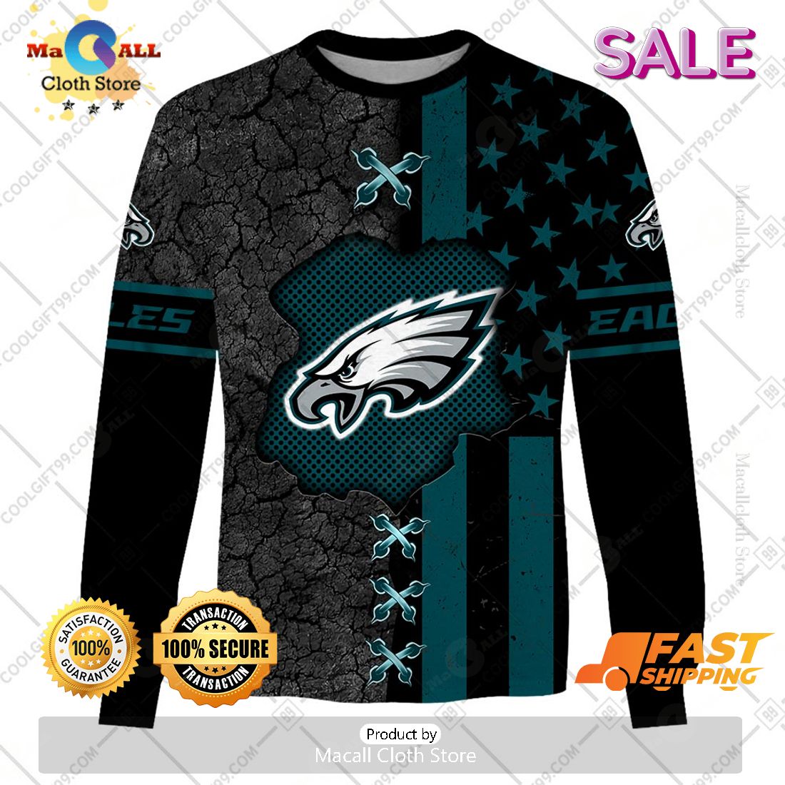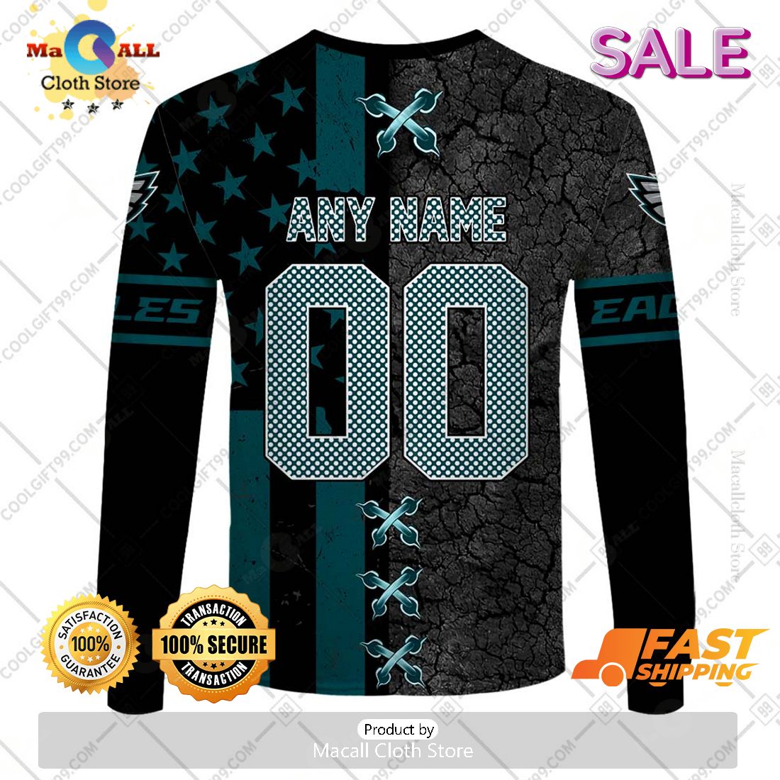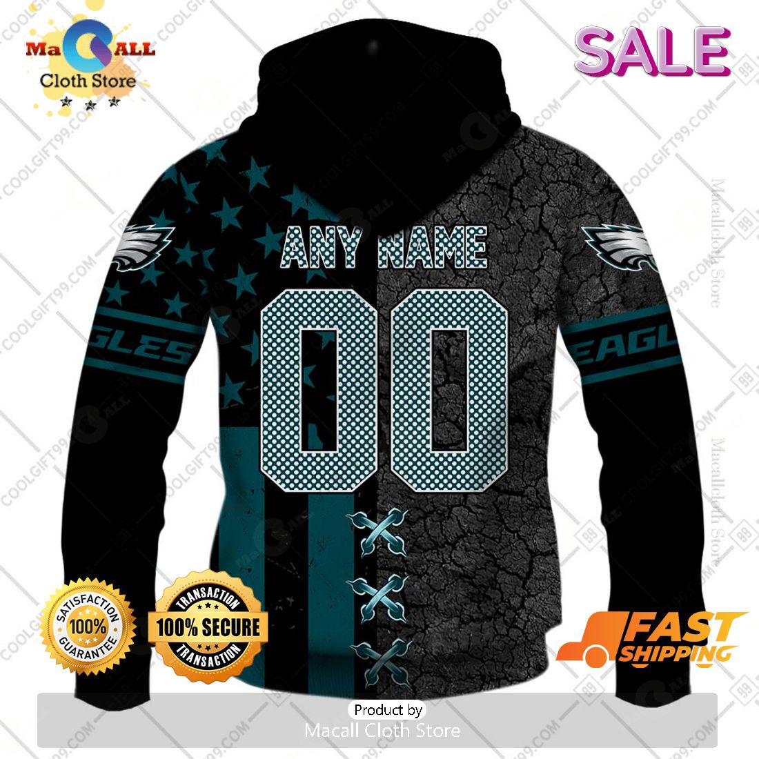 Introducing the NFL Philadelphia Eagles Personalized Flag Special Design Zip Hoodie, Sweatshirt 3D! This stylish gothed-out hoodie is a great way to show off your team spirit. The fleece lined hood and full length zip is sure to keep you comfortable while you show off your true fan colors. It features a classic three-dimensional Eagles logo to the chest and the team name down the sleeve. Personalize it further by having your name, number or initials printed across the back and show your pride for the team. With its strong and durable design, you’ll be ready to cheer your team on in any weather!
