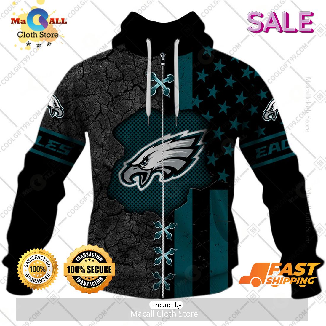 NFL Philadelphia Eagles Personalized Flag Special Design Zip Hoodie, Sweatshirt 3D Information: