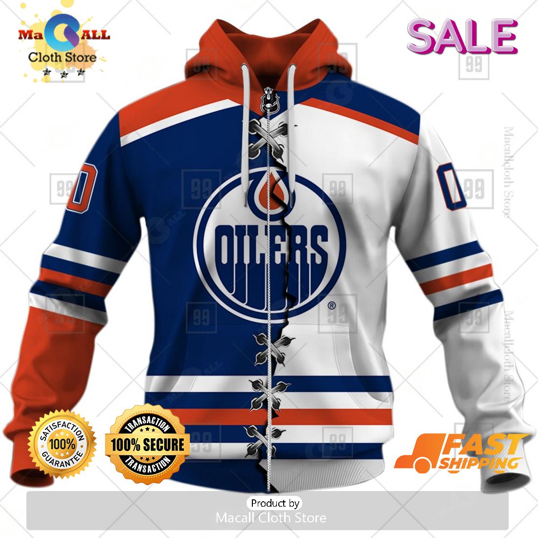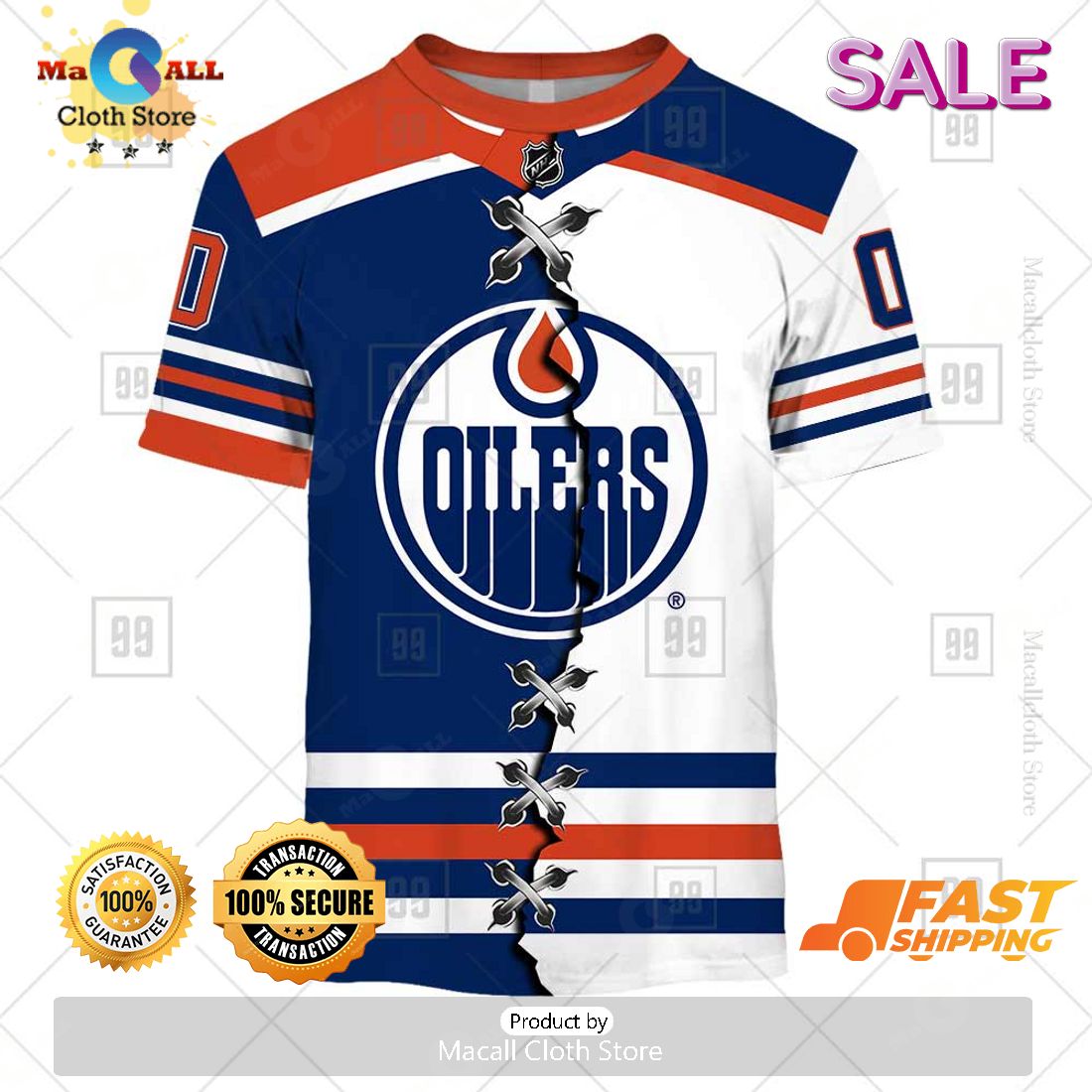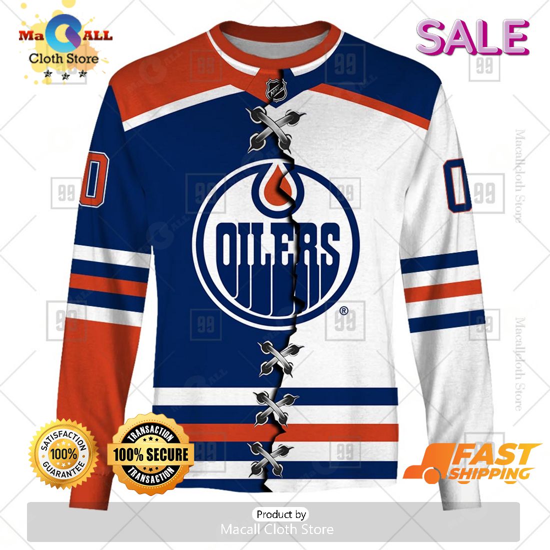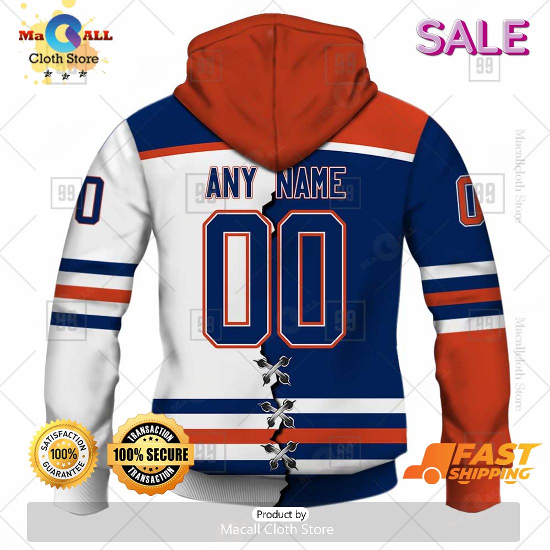 NHL Edmonton Oilers Personalized Broken Mix Jersey Style Zip Hoodie, Sweatshirt 3D Trendy Fashion Style