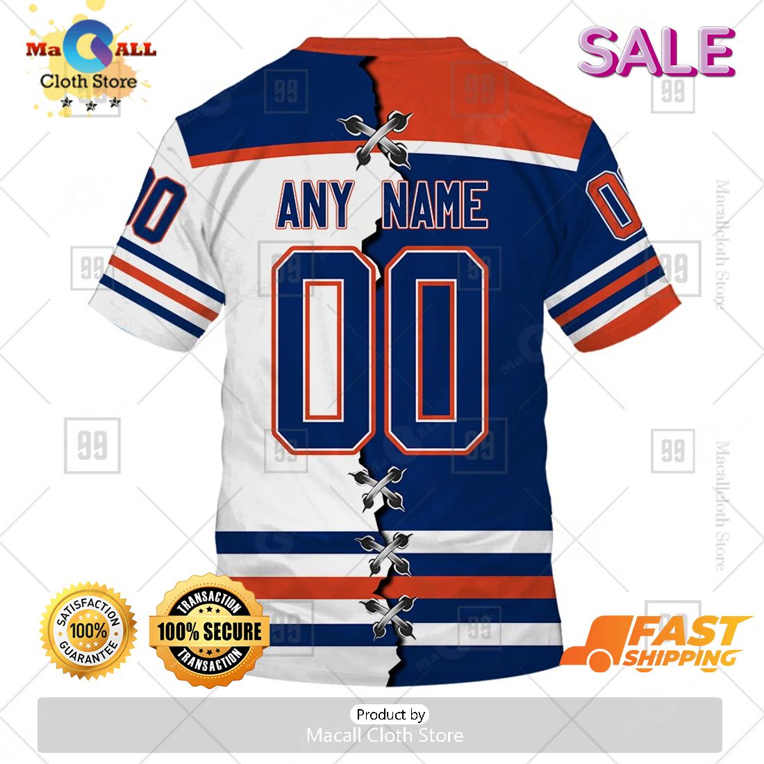 NHL Edmonton Oilers Personalized Broken Mix Jersey Style Zip Hoodie, Sweatshirt 3D Information: