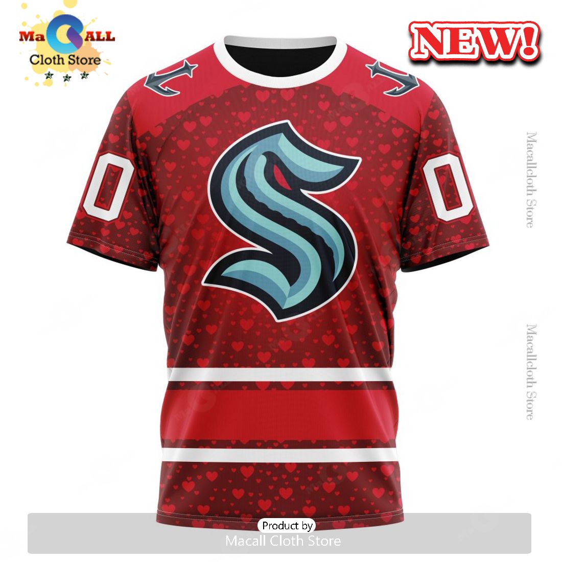 NHL Seattle Kraken Special Gift For Valentines Day Hoodie 3D Trendy Fashion Hoodie 3D, T-Shirt 3D, Long Sleeves, Sweatshirt, Pant 3D Style
