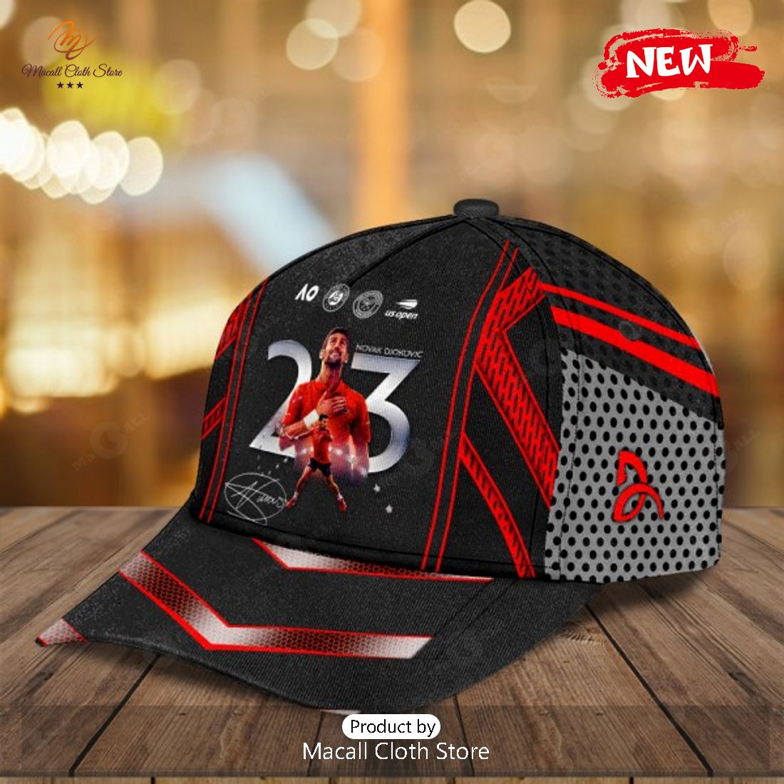 Novak Djokovic 23 Champions Premium Signatures Premium Black Classic Cap – A stylish Classic Cap, effectively help you avoid the sun.
