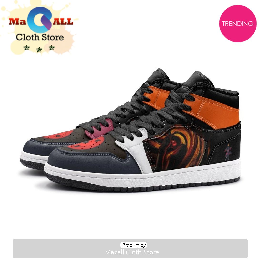 The Obito Uchiha Ninja Air Jordan 1 High Top Shoes are a must-have for any fan of the Naruto series. These shoes are inspired by Obito Uchiha, one of the most popular characters in the series. The shoes feature a black and red colorway with orange accents, just like Obito’s iconic outfit. They also have a unique design that includes a lightning bolt on the side and a hidden Sharingan eye on the back.