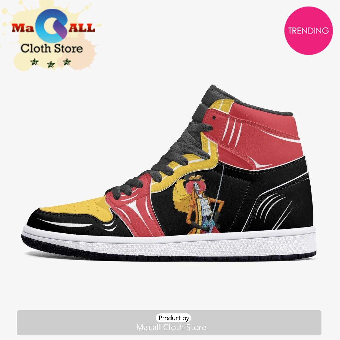 The One Piece Brook AJ1 High Top Shoes are a must-have for any fan of the series. These shoes are stylish and comfortable, and they feature a unique design that is sure to turn heads.