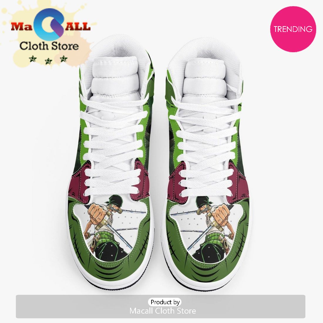 The One Piece Roronoa Zoro Santoryu Three Swords AJ1 High Top Shoes are a great way to show your love for the anime series. These shoes are stylish, comfortable, and durable, and they are sure to become a favorite part of your wardrobe.