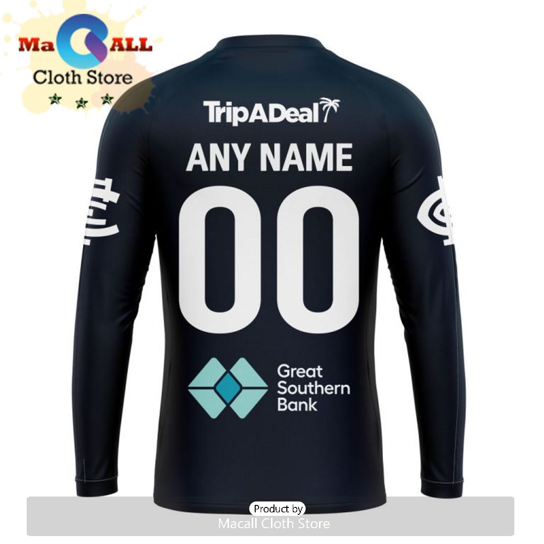 The Personalized AFL Carlton Blues FC Black Hoodie is the ultimate product for any fan of the Carlton Blues Football Club. Made with high-quality materials, this hoodie is both comfortable and stylish, making it the perfect addition to any fan’s wardrobe. The black design with the Carlton Blues logo prominently displayed on the front is sure to make a statement at any game or event. What makes this hoodie truly special is the option to personalize it with your own name and number, making it truly one-of-a-kind. Not only does this hoodie provide warmth and comfort, but it also allows fans to proudly represent their favorite team. Whether you’re heading to a game or just want to show off your team spirit, the Personalized AFL Carlton Blues FC Black Hoodie is the perfect choice for any fan.