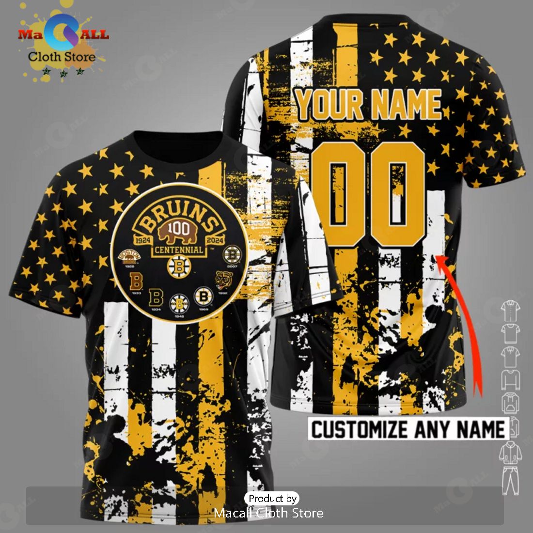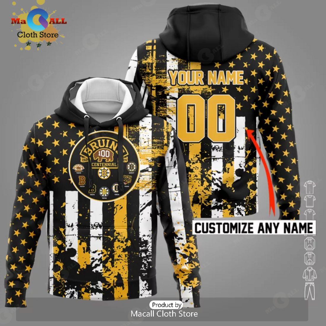 Personalized Boston Bruins 100th Anniversary US Flag Hockey Apparels Hoodie 3D Information: