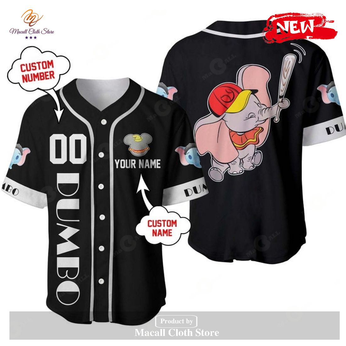 Personalized Dumbo The Flying Elephant Disney All Over Print Black Baseball Jersey Information: