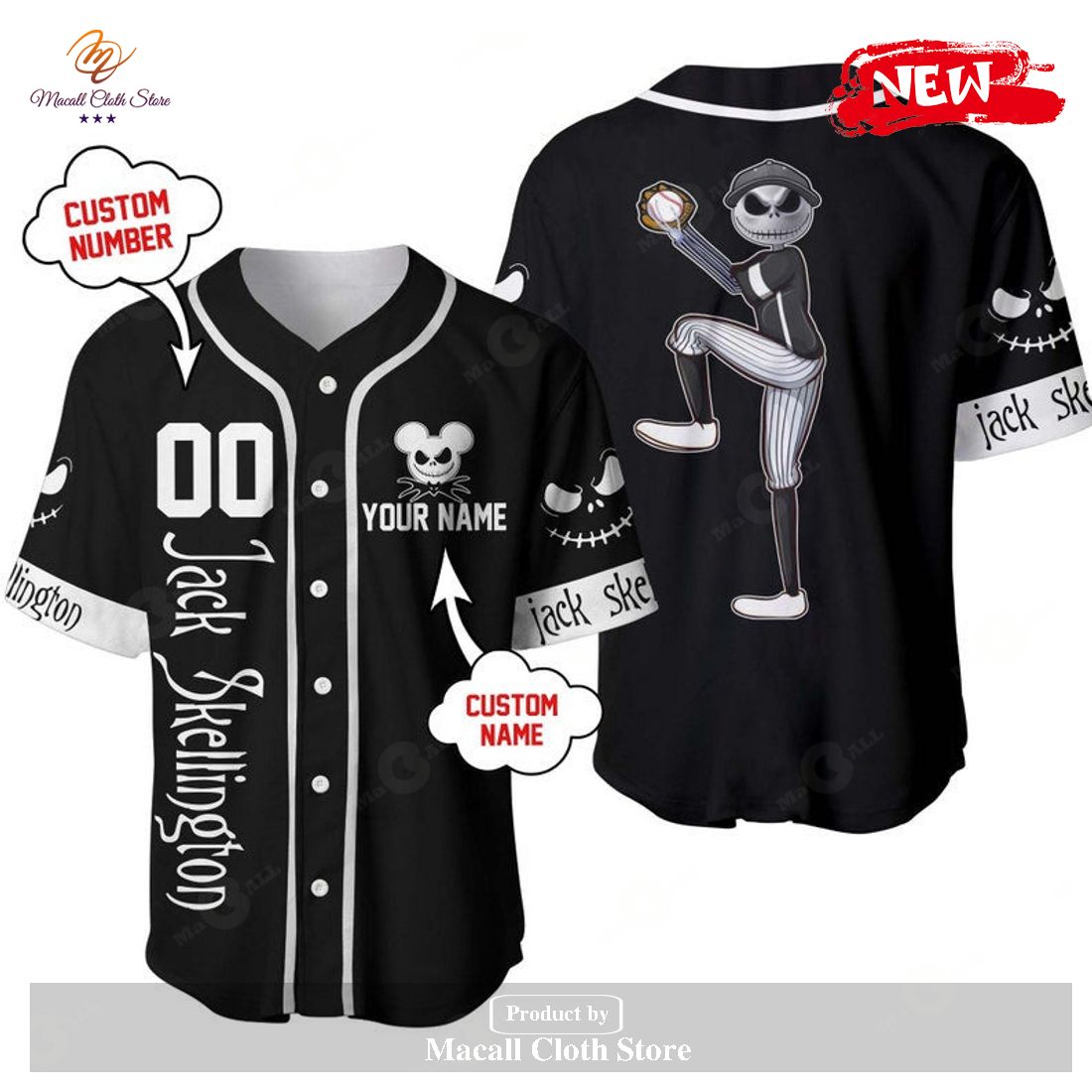 This Personalized Jack Skellington Disney All Over Print Black Baseball Jersey is the ideal choice for those who love the movies Nightmare Before Christmas and are passionate about baseball. It is made up of quality materials and is designed to be durable, comfortable and stylish. It is personalized with your name and number, and it also features an intricate all-over print of Jack Skellington and digitally printed details of his iconic outfit. This jersey is lightweight and breathable, perfect for any outdoor occasion. It is machine washable and easy to maintain. It is a must-have for any fan of Disney and the cult classic movie Nightmare Before Christmas.