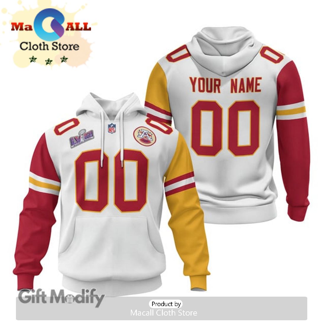 The Personalized Kansas City Chiefs Super Bowl LVIII Champion White Design Hoodie 3D is the ultimate must-have for any die-hard Chiefs fan. This exclusive hoodie is the perfect way to show off your team pride and celebrate the monumental win of Super Bowl LVIII. The front of the hoodie features a bold, white design with the official Super Bowl LVIII Champions logo, while the back showcases the iconic Kansas City Chiefs emblem. But what truly sets this hoodie apart is the ability to personalize it with your own name or a special message, making it a one-of-a-kind piece that reflects your love for the Chiefs. Made with high-quality materials, this hoodie is not just stylish but also comfortable to wear. Whether you’re going to a game or simply running errands, this hoodie will keep you warm and make a statement. Don’t miss the opportunity to own this special piece of merchandise and show your loyalty to the Chiefs in style.