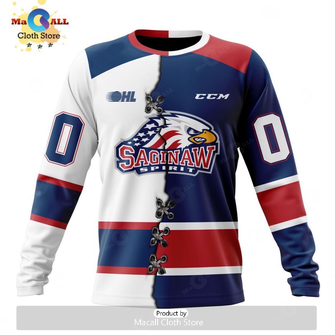 Personalized Letters Number Saginaw Spirit Mix Home And Away Jersey Hoodie 3D Limited Information: