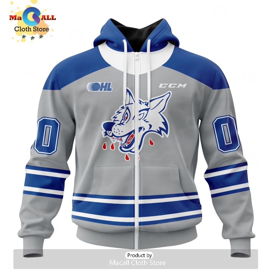 The Personalized Letters Number Sudbury Wolves Reverse Retro Pattern Jersey Hoodie is a must-have for any fan of the Sudbury Wolves hockey team. This unique hoodie features a bold reverse retro pattern that pays homage to the team’s history while remaining stylish and modern. What sets this hoodie apart is the ability to personalize it with your choice of letters and numbers, making it the perfect way to show your support for your favorite player or create a one-of-a-kind piece. The 3D design adds an extra touch of depth and dimension, making this hoodie stand out from the rest. Made from high-quality material, this hoodie is both comfortable and durable, ensuring that it will be a go-to item for years to come. Whether you’re cheering on the Wolves at the arena or simply want to sport a unique and personalized piece, the Personalized Letters Number Sudbury Wolves Reverse Retro Pattern Jersey Hoodie is the perfect choice for any fan.