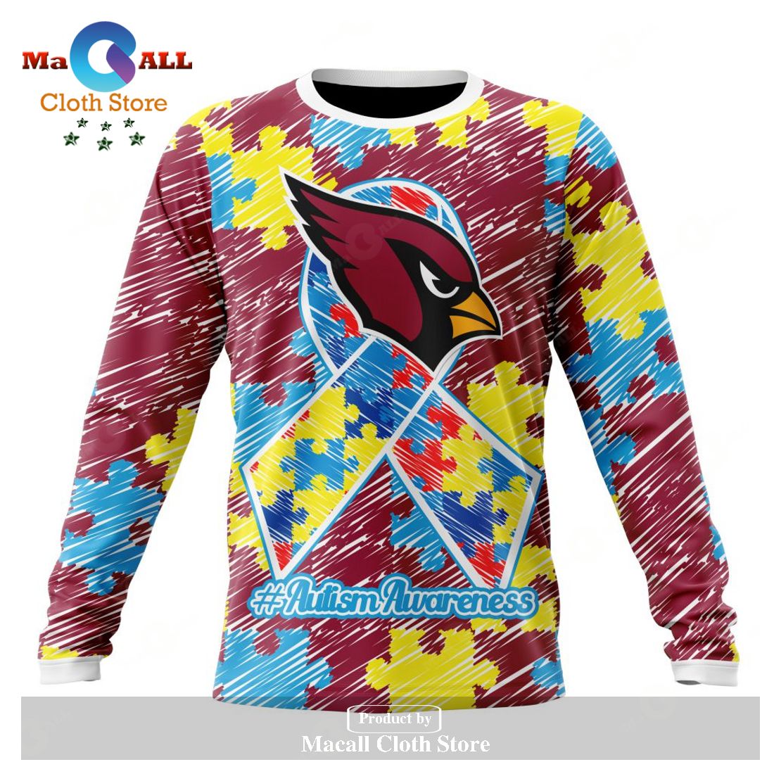 Personalized NFL Arizona Cardinals Special Autism Awareness Puzzle Game Stripes Design Hoodie Sweatshirt 3D