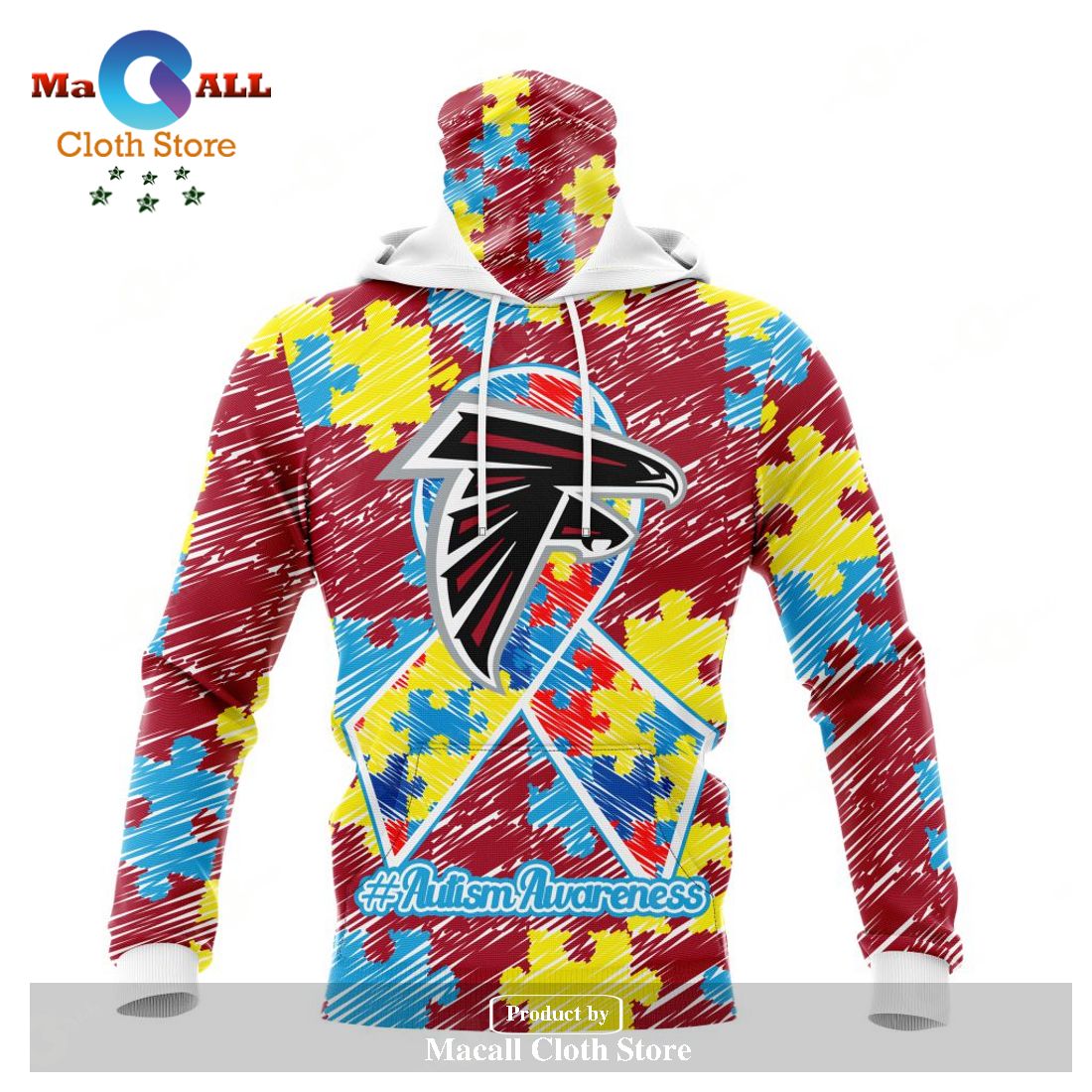 Personalized NFL Atlanta Falcons Special Autism Awareness Puzzle Game Stripes Design Hoodie Sweatshirt 3D Information: