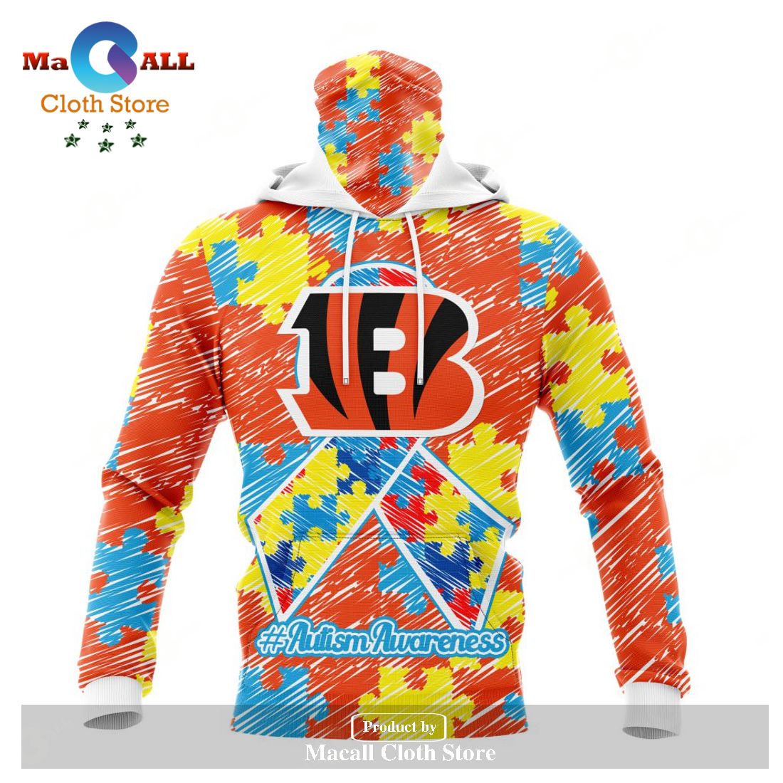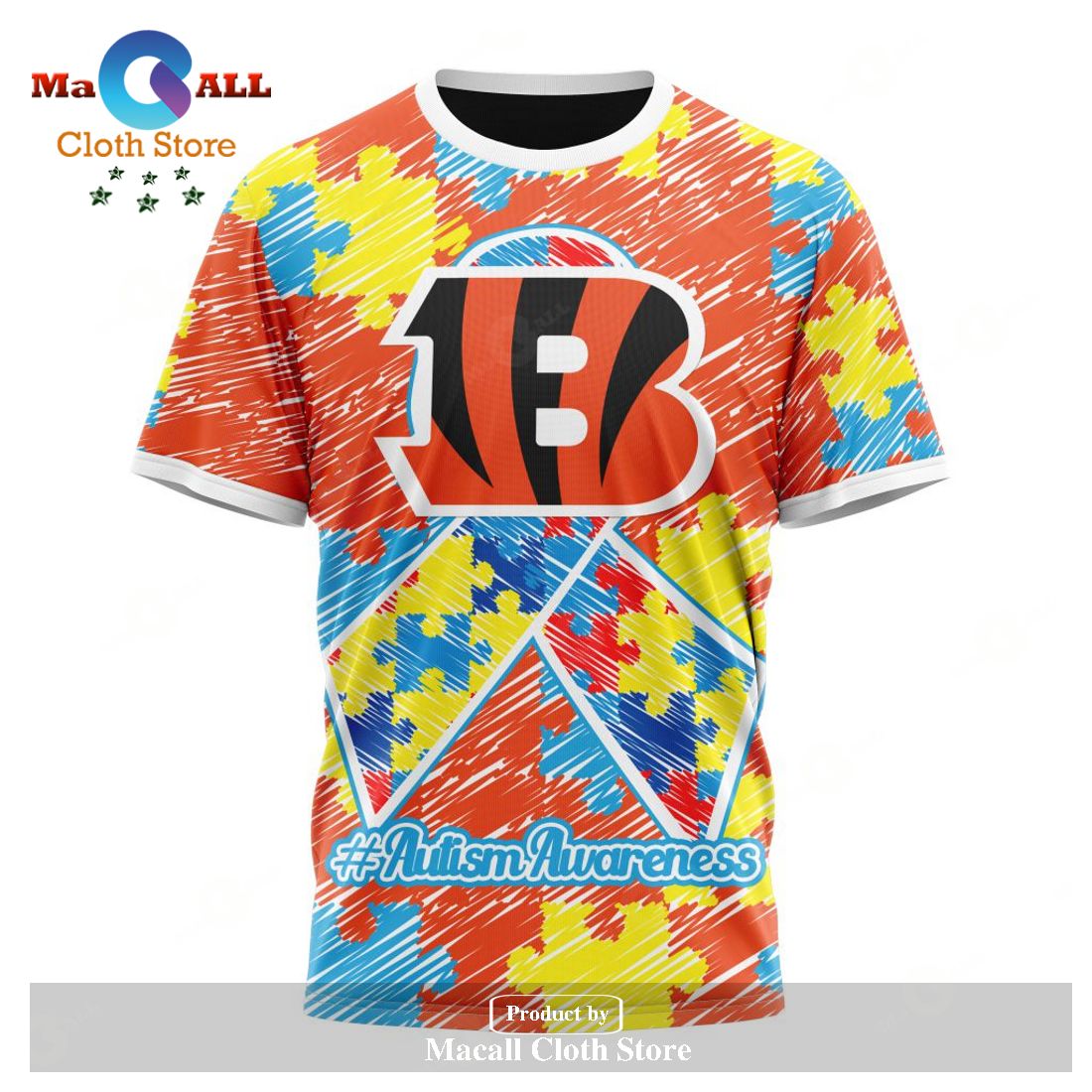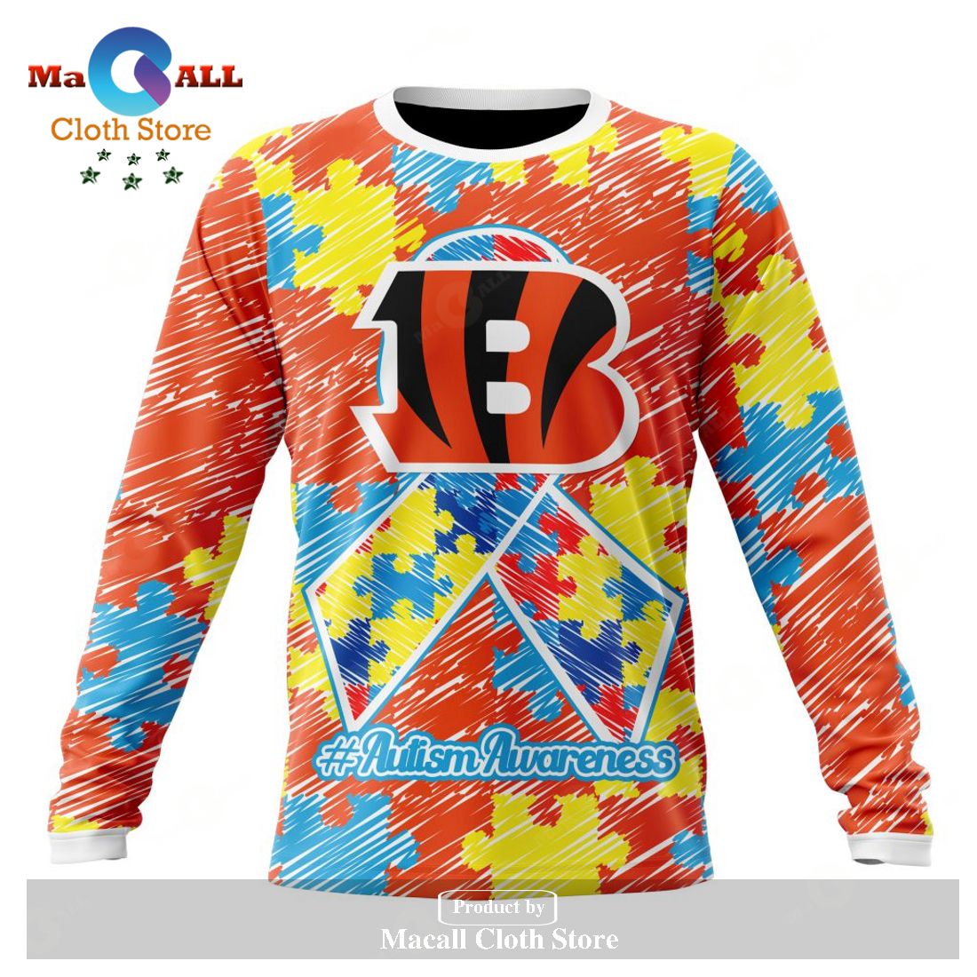 Personalized NFL Cincinnati Bengals Special Autism Awareness Puzzle Game Stripes Design Hoodie Sweatshirt 3D