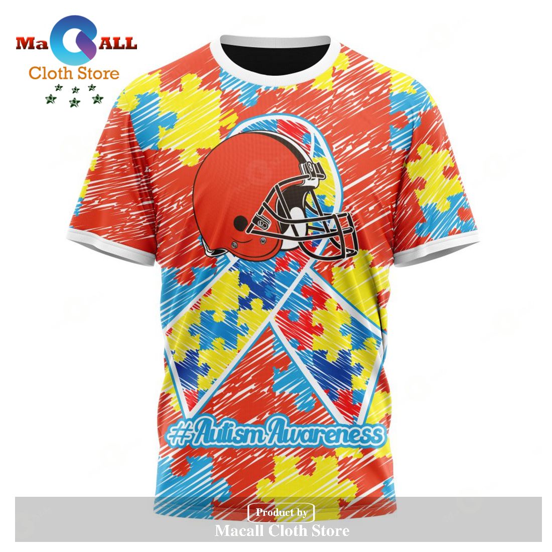 Personalized NFL Cleveland Browns Special Autism Awareness Puzzle Game Stripes Design Hoodie Sweatshirt 3D Trendy Fashion Style