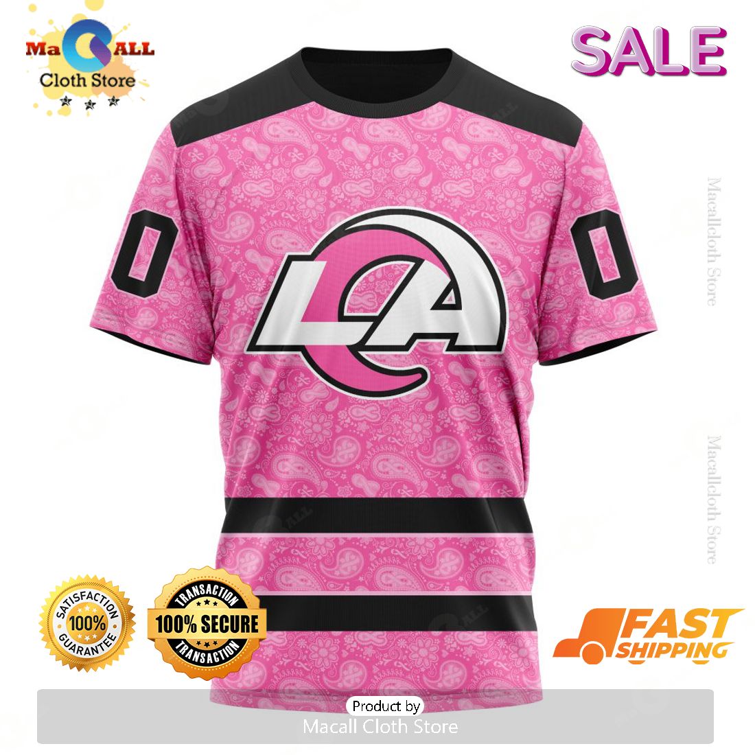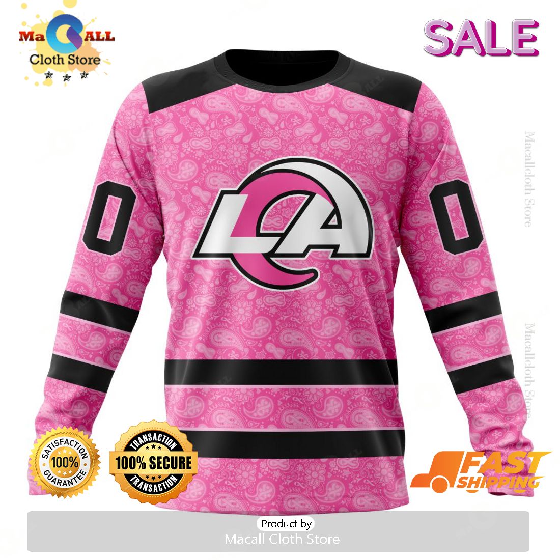 If you are a big NFL fan and have followed the Los Angeles Rams, then this Personalized NFL Los Angeles Rams Special Pink Design Fight Breast Cancer Zip Hoodie, Sweatshirt 3D is perfect for you. This hoodie is made with 100% polyester and features a 3D rubberized pink design that looks great and supports a cause close to your heart. The hoodie sports a two-way front zipper closure, ribbed cuff and waistband and is also machine-washable for your convenience. Show your love and loyalty to this pro football team and do something meaningful in the fight against breast cancer at the same time. The hoodie is the perfect gift for any loyal Rams fan, so don’t hesitate and get one today!