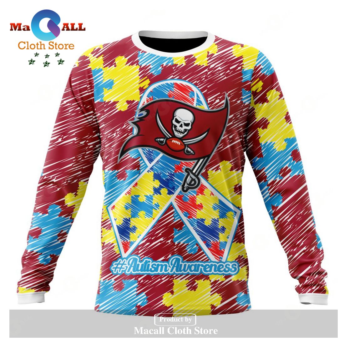 Personalized NFL Tampa Bay Buccaneers Special Autism Awareness Puzzle Game Stripes Design Hoodie Sweatshirt 3D Trendy Fashion Style