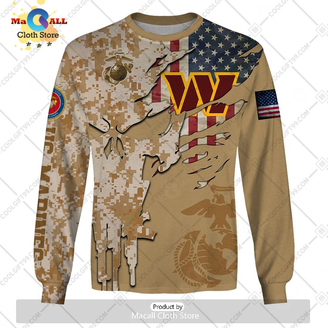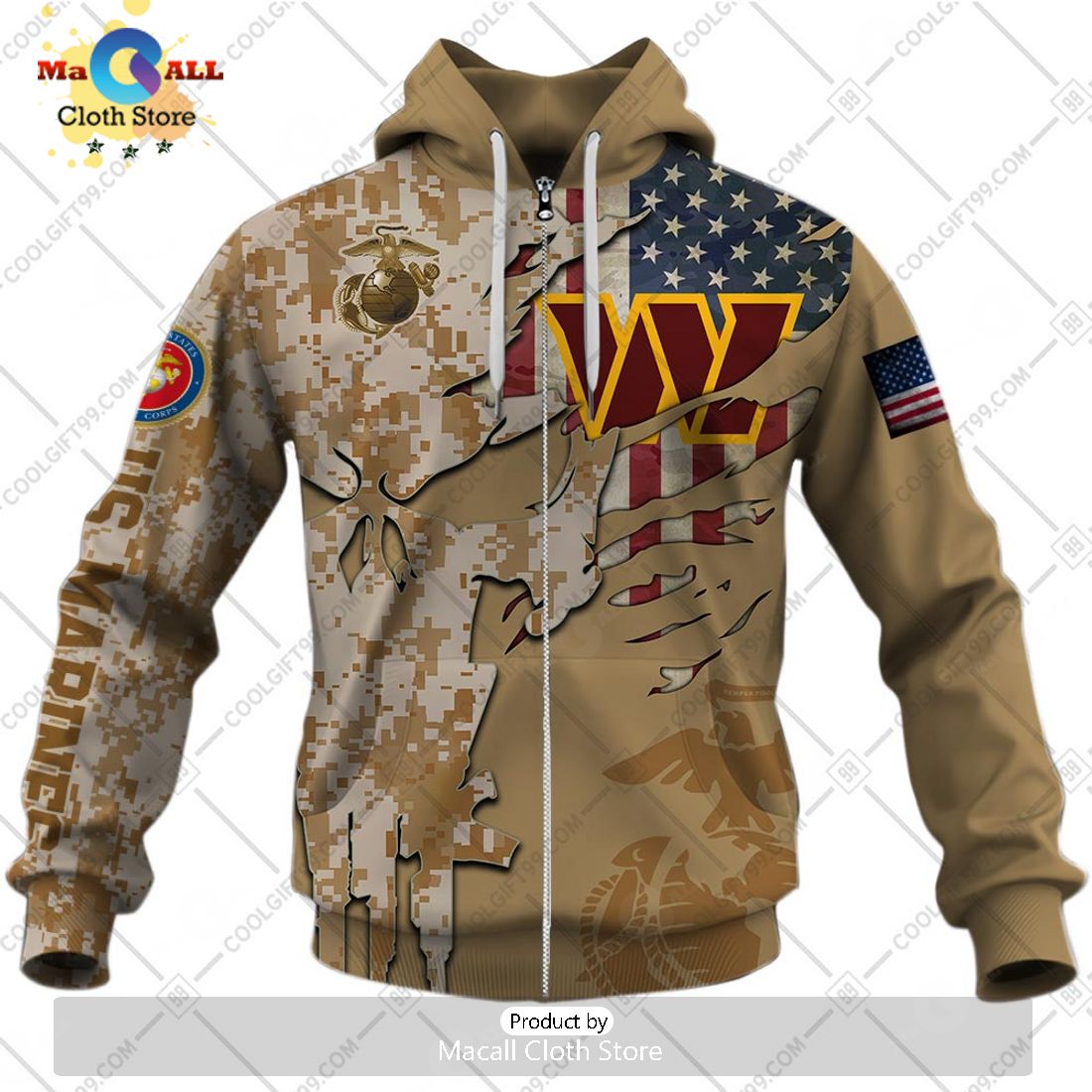 Personalized NFL Washington Commanders Marine Camo Special Hoodie 3D Trendy Fashion Hoodie, Zipper Hoodie, Fleece Zipper Hoodie, Dress Hoodie, T-Shirt, Long Sleeves, Sweatshirt and Long Pant