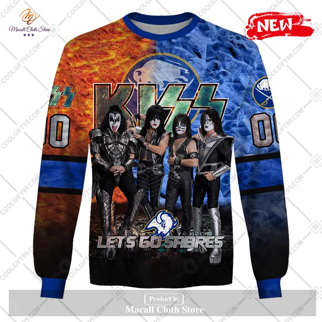 Personalized NHL Buffalo Sabres x Kiss Band V1 Design Hoodie Sweatshirt 3D Information: