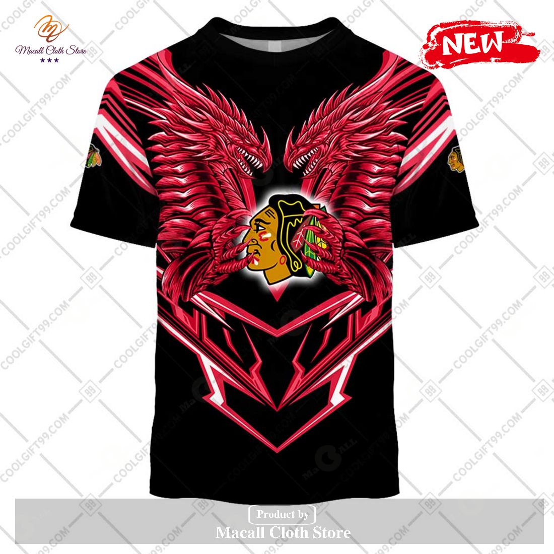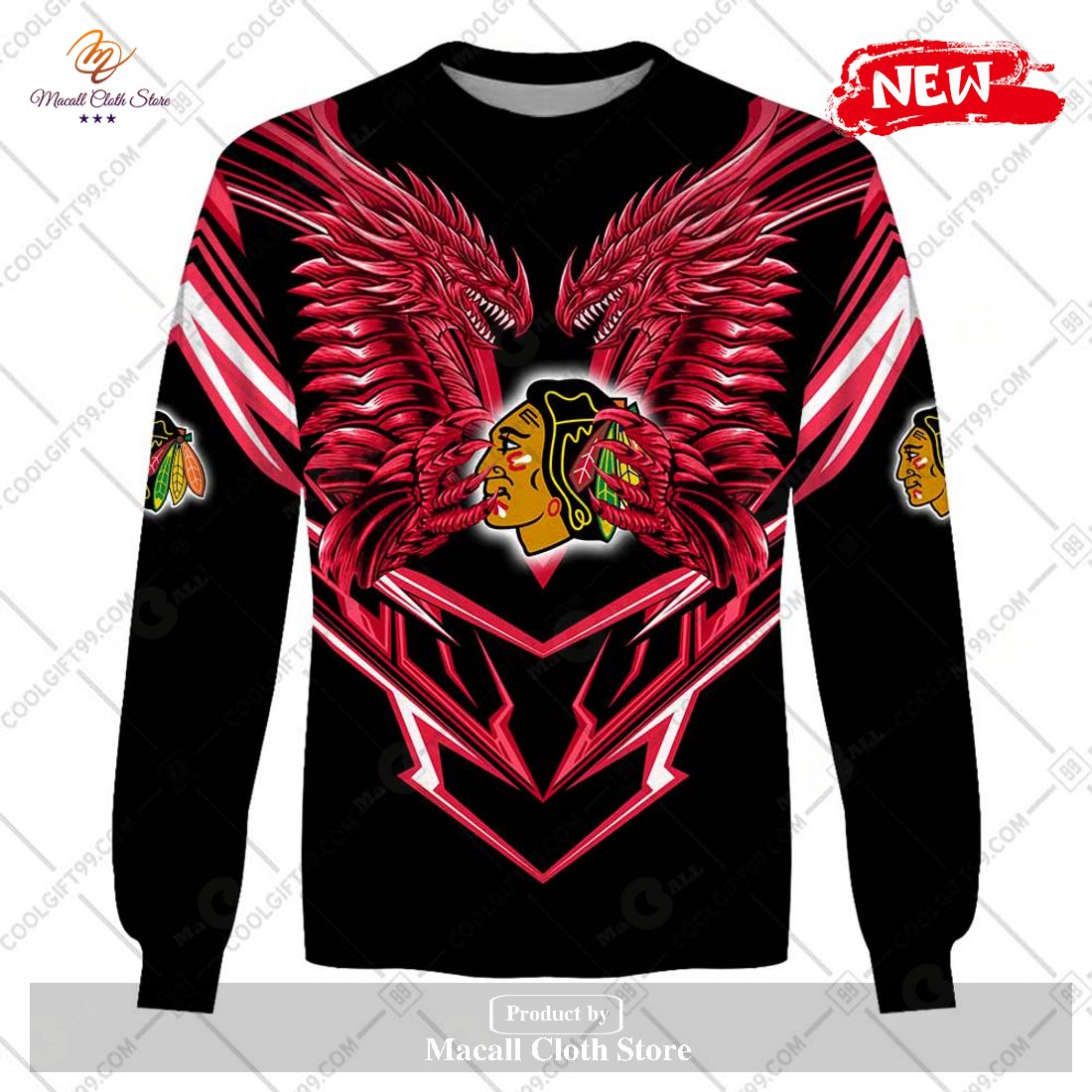 Personalized NHL Chicago Blackhawks Dragon Design Hoodie Sweatshirt 3D Trendy Fashion Style