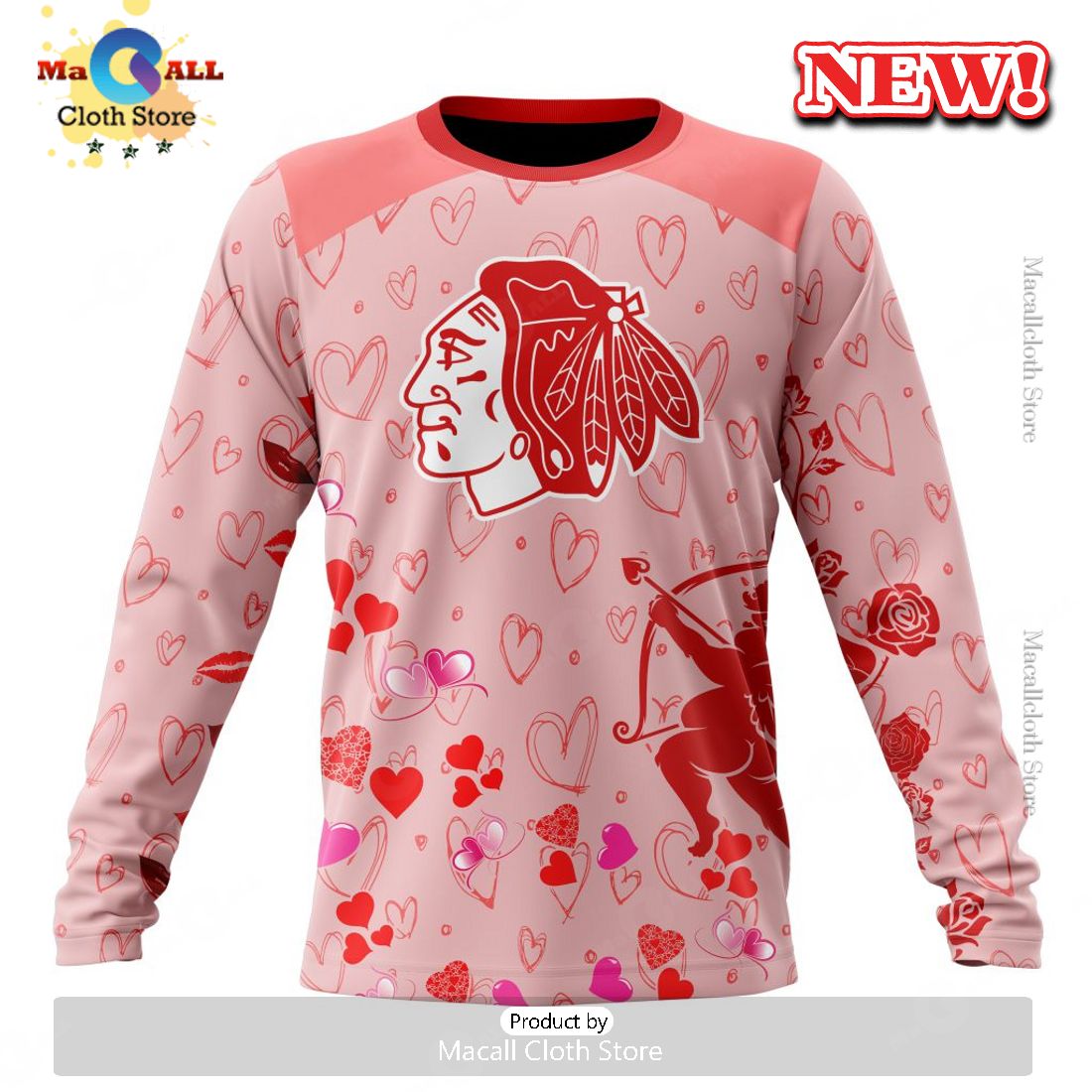 Personalized NHL Chicago Blackhawks Special Gift For Valentines Day Hoodie 3D Trendy Fashion Hoodie 3D, T-Shirt 3D, Long Sleeves, Sweatshirt, Pant 3D Style