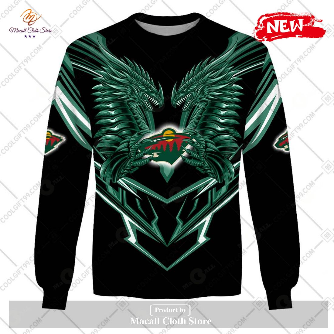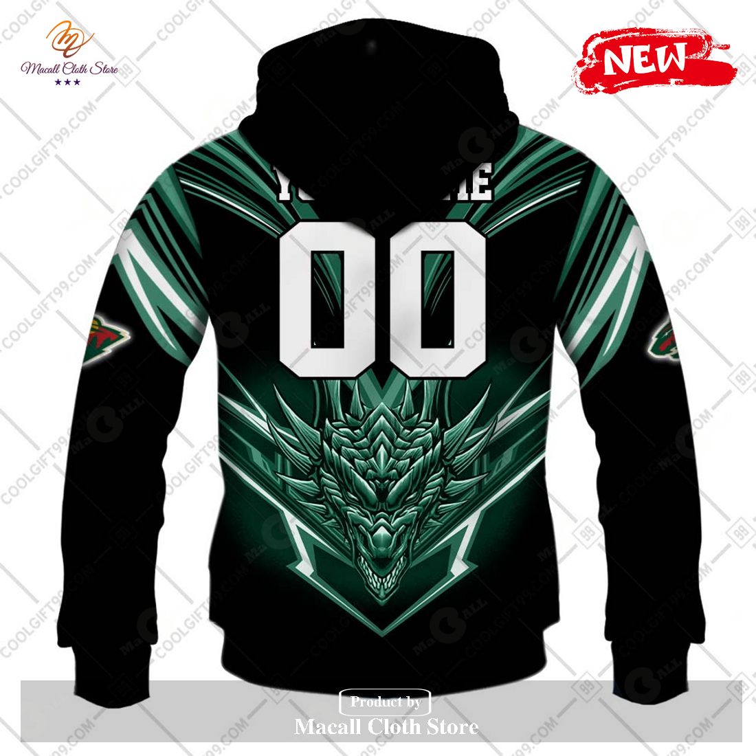 Personalized NHL Minnesota Wild Dragon Design Hoodie Sweatshirt 3D Information: