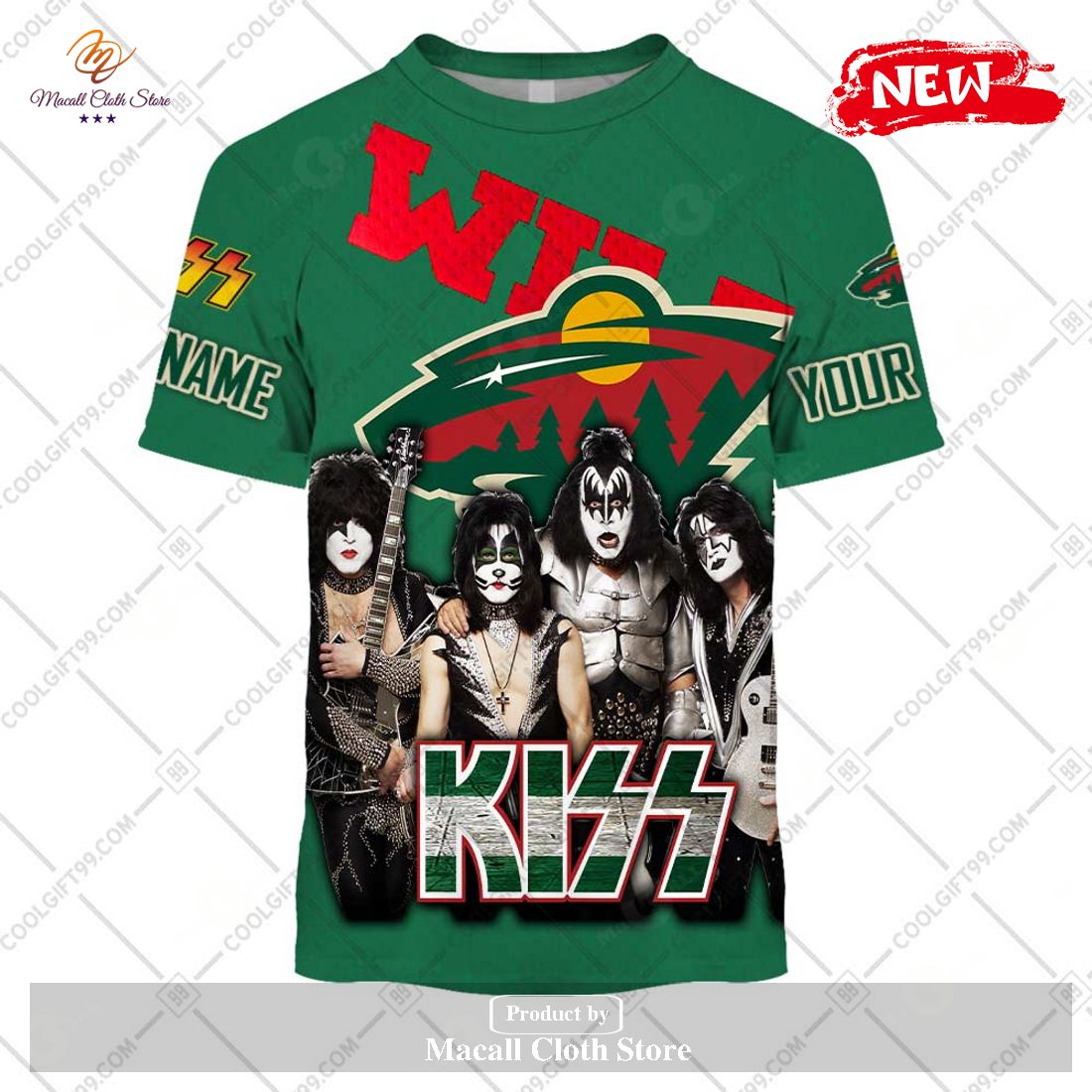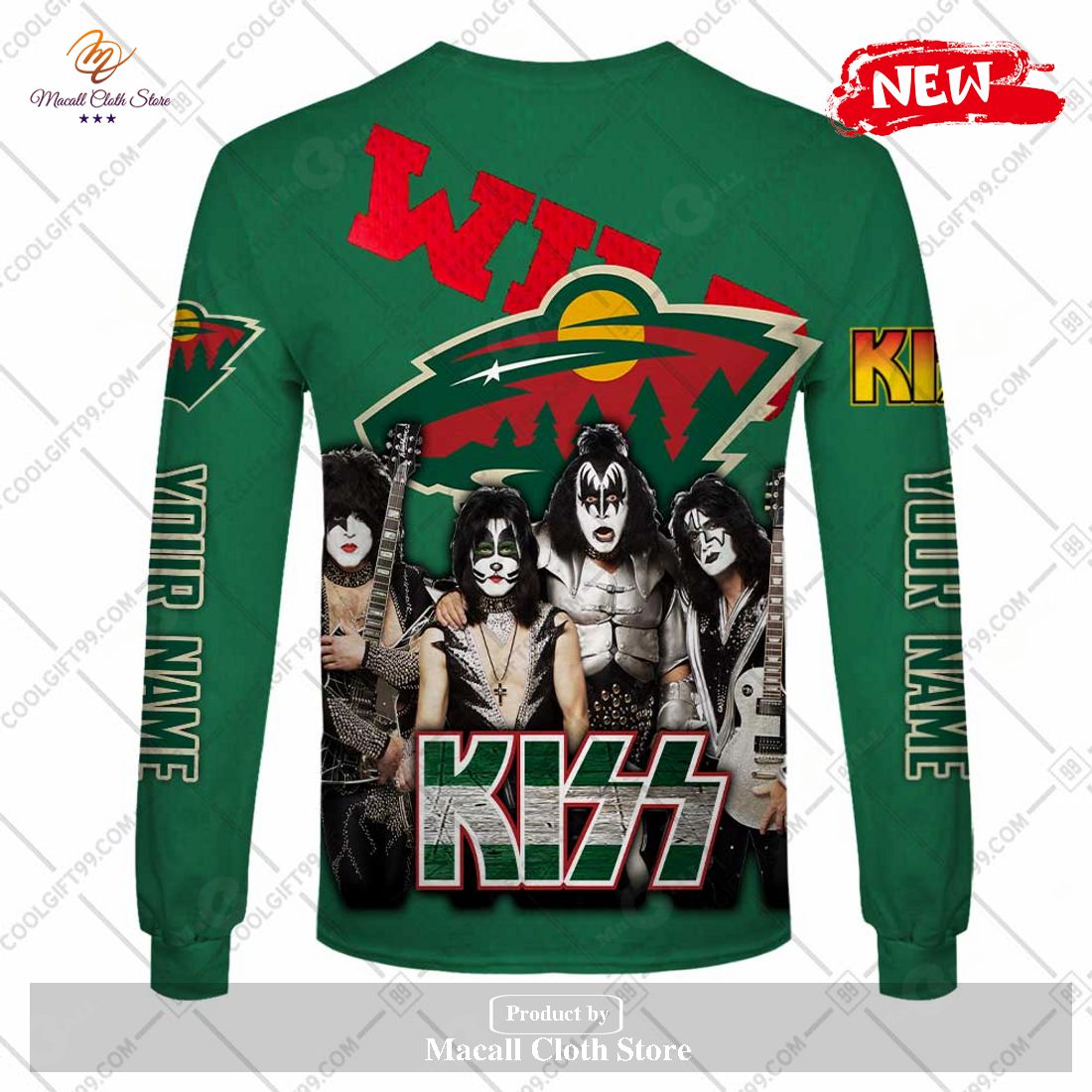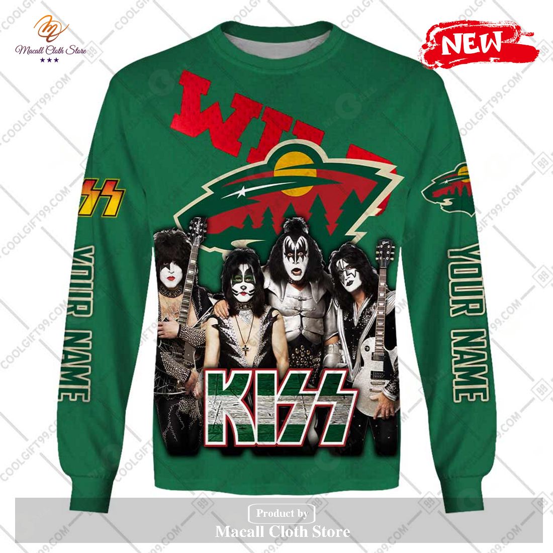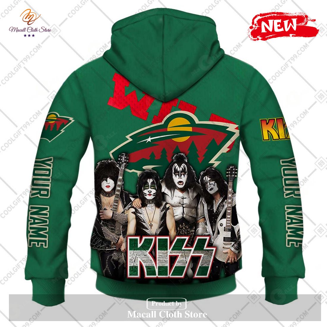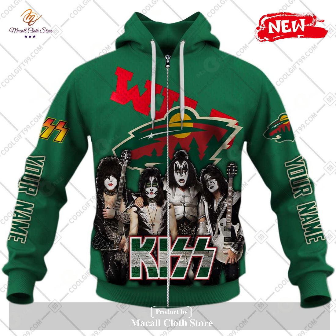 Personalized NHL Minnesota Wild x Kiss Band V2 Design Hoodie Sweatshirt 3D Trendy Fashion Style