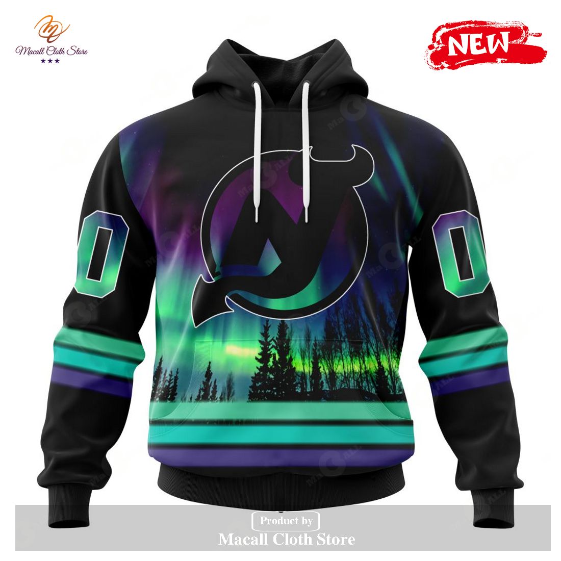Personalized NHL New Jersey Devils Special Design With Northern Lights Hoodie Sweatshirt 3D Information: