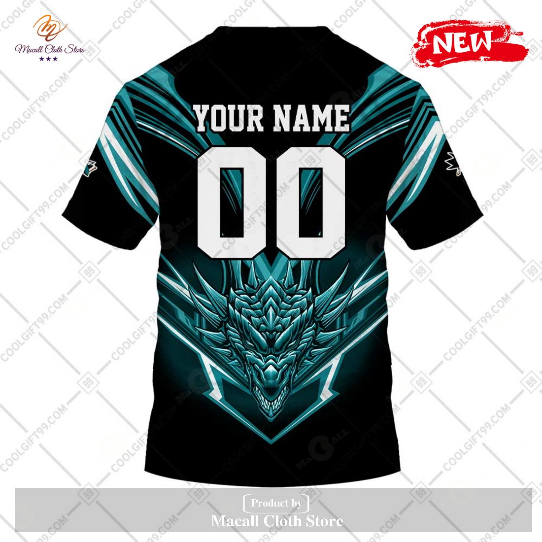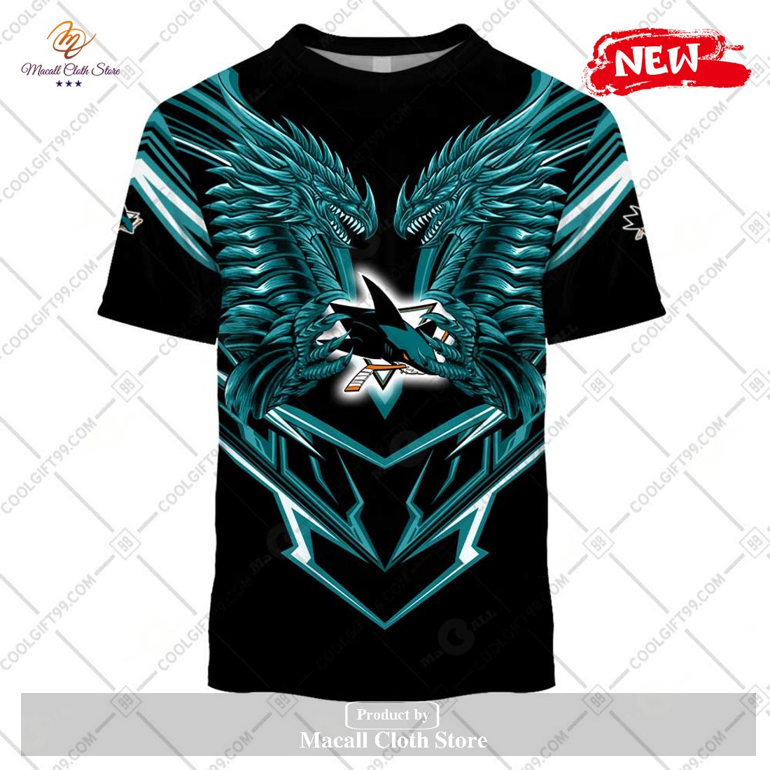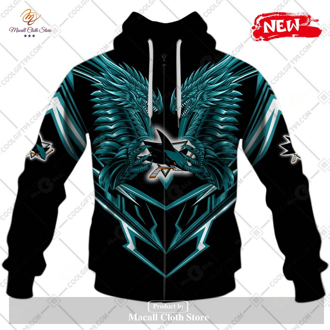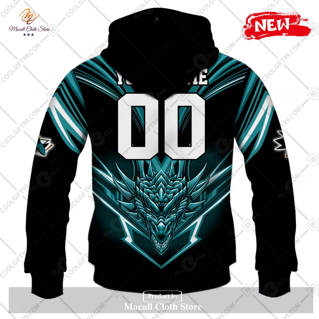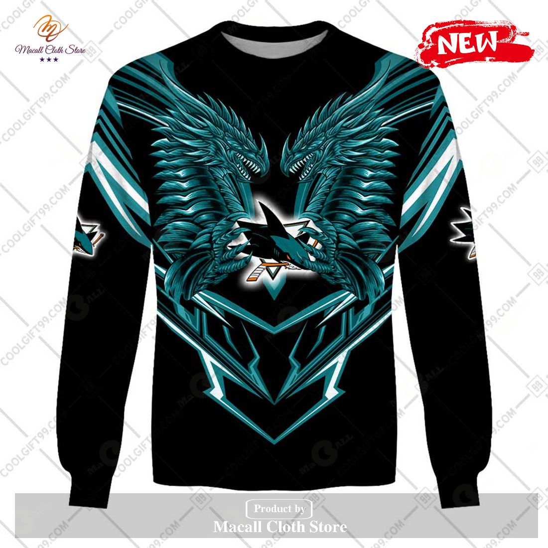 Personalized NHL San Jose Sharks Dragon Design Hoodie Sweatshirt 3D Information: